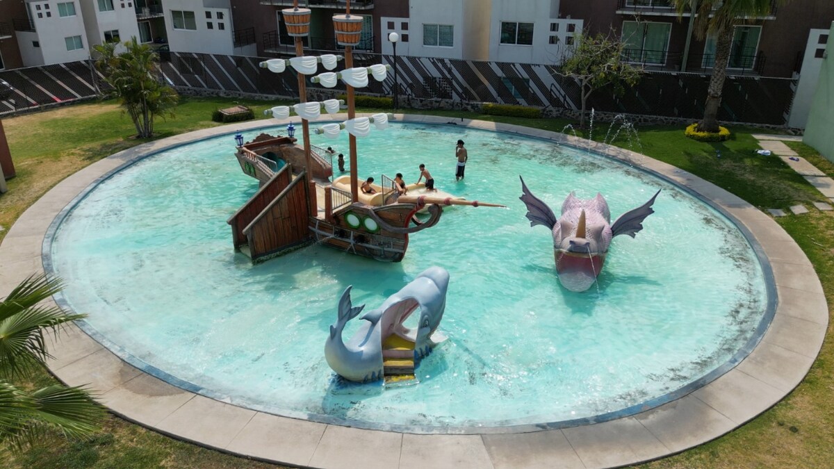Temixcodakı bu rahat mənzildə unudulmaz tətildən zövq alın. 4-cü mərtəbədən möhtəşəm mənzərə ilə dincəlin, böyük hovuza qərq olun və 7 nəfərə qədər qonaq üçün tam təchiz olunmuş məkandan zövq alın. İki rahat otaq, tam mətbəx, etibarlı Wi-Fi və yaxınlıqdakı mağazaları olan ideal mövqe. Ailələr və ya dost qrupları üçün mükəmməldir. İndi bron edin və təcrübəni yaşayın!