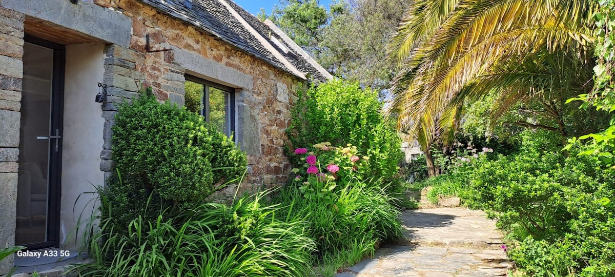 Kiçik Guimaëc şəhərində diqqətli dekorasiyası olan tamamilə təmir edilmiş ev, dəniz mənzərəsi bağın sonunda yerləşir. Aşağıdakı dənizdə göz ilə kəndin sakitliyindən zövq alın. Evdə buxarı olan geniş və işıqlı qonaq otağı, 4 yataq otağı və 2 hamam otağı var. Küləyin və günəşin təsirindən asılı olaraq 2 terrasdan zövq ala bilərsiniz.