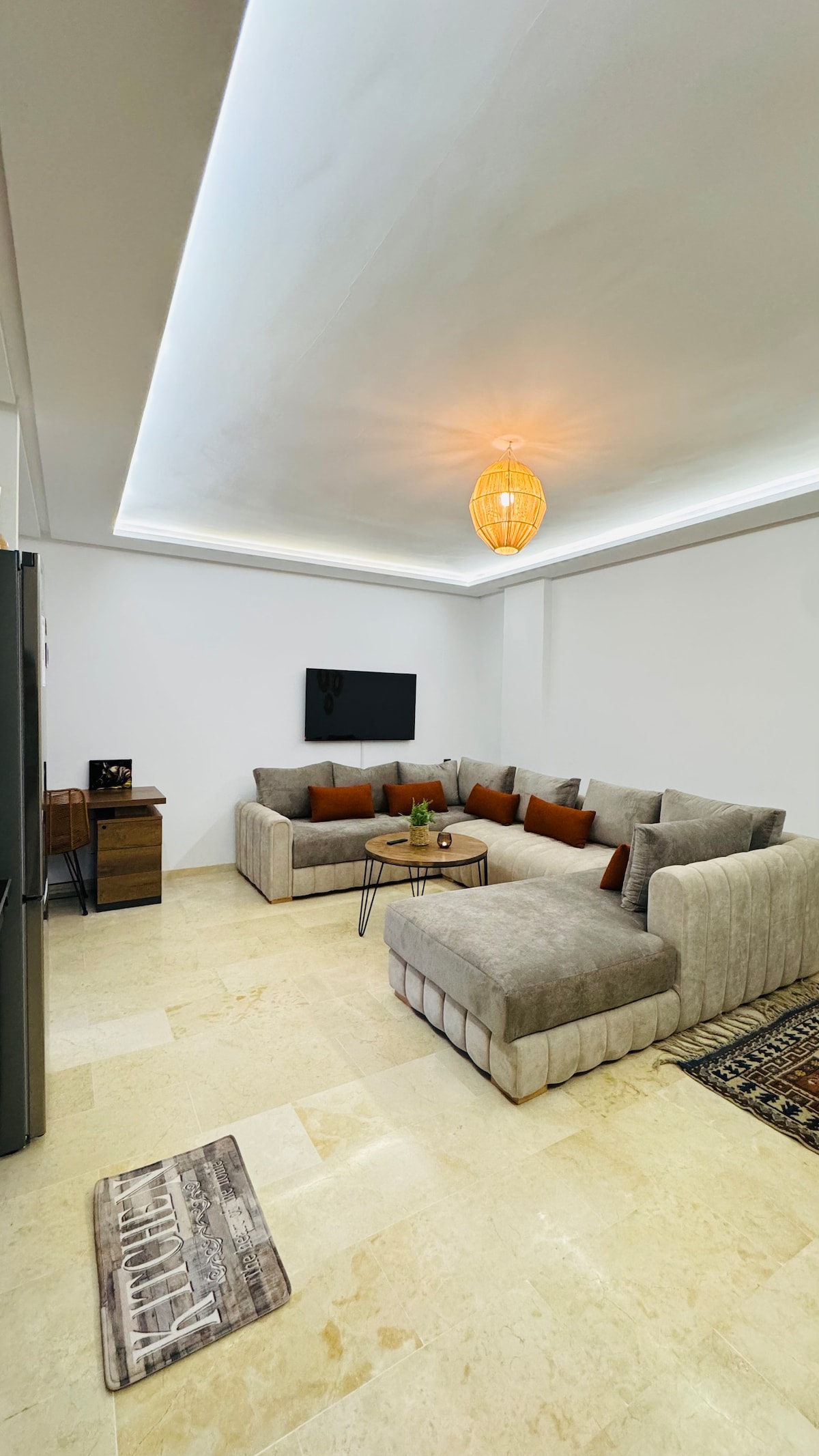 "Charming accommodation in Tangier! Discover a cozy bedroom, an original kitchen, a welcoming living room, and a sunny patio. Enjoy the comfort and style of this unique space." "Charmant hébergement à Tanger, situé en plein cœur de la ville ! Découvrez une chambre douillette, une cuisine originale, un salon accueillant et un patio ensoleillé. Profitez du confort et du style de cet espace unique."