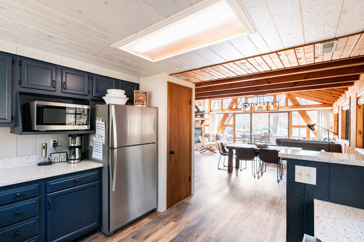 Nestled in the woods overlooking Foxfire Lake, this A-frame offers the perfect four-season escape. When the snow falls, it transforms into the quintessential winter retreat. Cozy up beside the stone fireplace, where views of the lake are framed by frosted trees. As the weather warms, the lake calls! Enjoy direct access to Foxfire Lake from our private dock. Spend your days fishing, swimming, or simply basking in the sun. This chalet will help you find joy and relaxation, whatever the season.