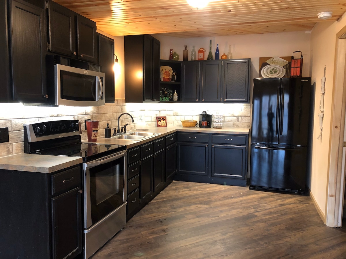 Very private country setting just 2 miles south of interstate 70. You’ll likely enjoy some wildlife sightings. Nice private patio seating. Cabin feel, spacious, has full kitchen. Murphy bed in the living room (very comfortable) provides an extra Q bed if needed, otherwise it’s out of the way. Internet was weak so affected some reviews but is super fast now. Nearby destinations are Cedar Lake Winery, Big Joel’s Safari, Long Row Lavender Farm, and Pumpkins Galore.