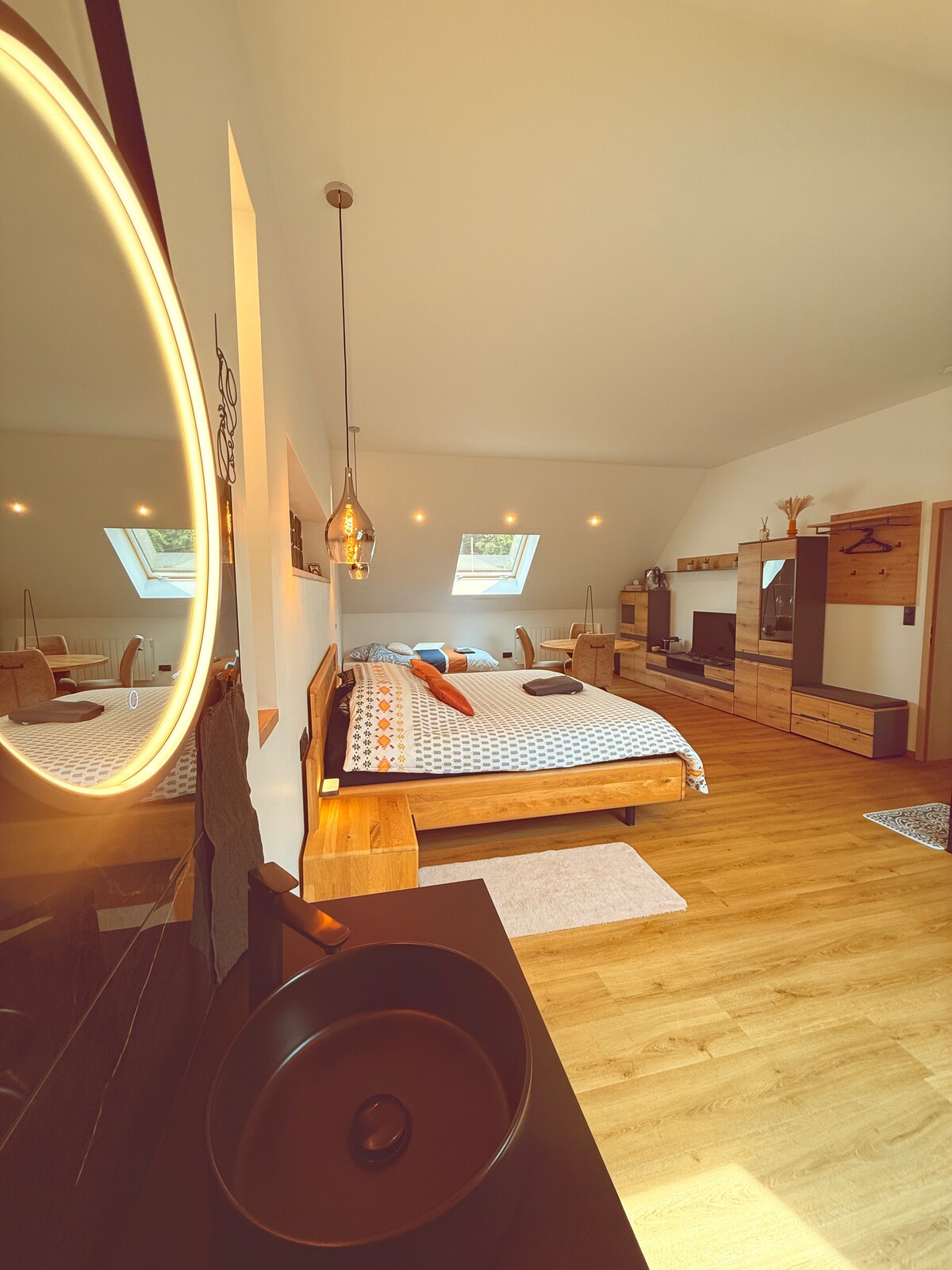 Heyvanlarımızın əhatəsində yaşıl mühitin mərkəzində kottecimizi təklif edirik. Məkan sakit və rahatdır. Ayrıca SPA və ayrıca sauna limitsiz mövcuddur (İnsanların sayından asılı olmayaraq 20 €/qonaqlama haqqı üçün) Bağda oyun sahəsi + poçt xətti var Bağın müstəqil hissəsində şişmə tikili var Velosiped yolları kottecləri əhatə edir, sizə pulsuz elektrik velosipedləri + uşaq oturacağı təklif edə bilərik