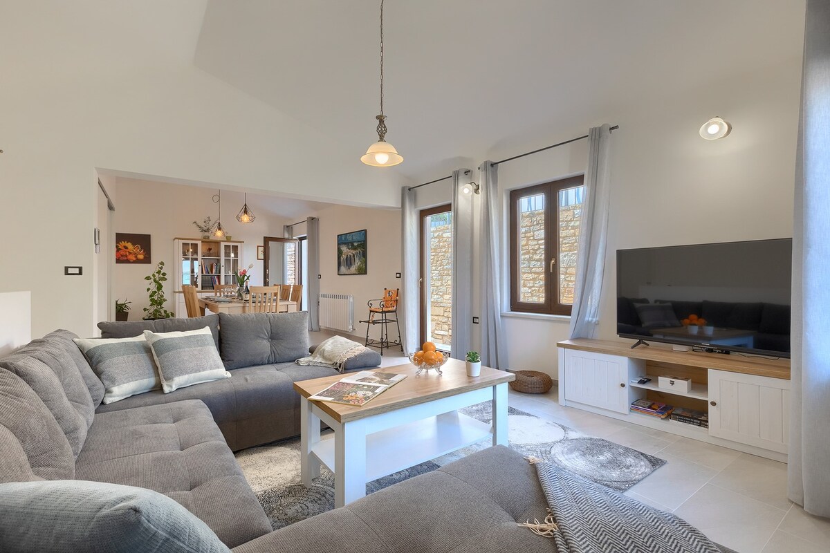 YENİ - istilikli hovuz! Kranceti kəndində (Motovun şəhərindən 1 kilometr məsafədə) yerləşən, dörd nəfər üçün uyğun olan kiçik, rahat və tənha ev. Ev sakit, sağlam və aktiv təcrübə axtaran cütlüklər, ailələr və fərdlər üçün mükəmməldir. Motovun heyrətamiz mənzərəsi olan xüsusi üzgüçülük hovuzu və səhər yeməyi və ya romantik şam yeməkləri üçün mükəmməl açıq havada masa və stullar var.