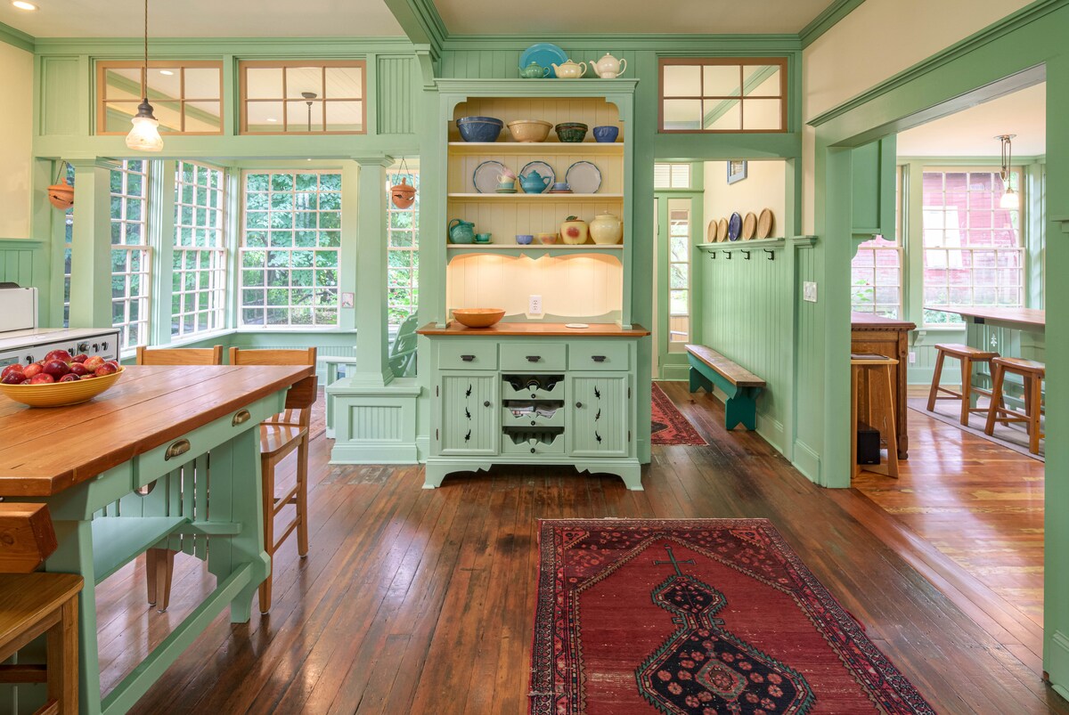 Qalay damı olan 1930-cu ilin bu düyünlü şam kabinəsindən Sendi çayının səsinə yuxuya gedin,. Bu rahat kabinə bitkilər, üzüm və orta əsr dekorasiyası ilə doludur. Taxta sobanın yanında isti və rahat olun və böyük şəkil pəncərələrindən yağış və ya qar yağmasını izləyin. Yeni avadanlıqlarla təchiz edilmiş geniş mətbəxdən zövq alın. Açıq havada sakit məkanda dincəlin, sidr ağacları və od çuxuru arasında dincəlin. Səviyyə 1 EV şarjı mövcuddur. * Odun sobası /istilik sistemi ilə tanış olduğunuza əmin olmaq üçün aşağıda ətraflı oxuyun *
