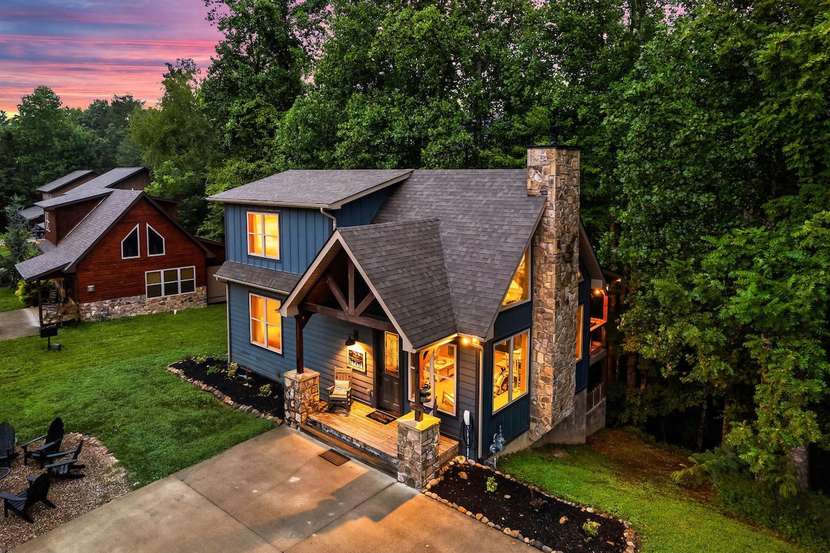 Lüks Xüsusi Dağ Evi! 2mi to dtwn/king bed/hottub