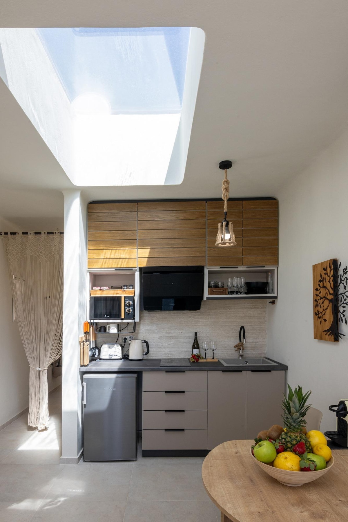 This 55 sq.m. eco-friendly house is located 18 mins by car from the port of Tinos, on the west side of the island, nestled in an olive grove and flanked by rocky landscape and a view of the Aegean Sea. This traditional farmhouse has been redesigned in a minimal style. The space is ideal for a couple who loves country living and privacy. It offers a chance to decompress from city life, and reconnect with the simplicity and tranquility of nature and mindfulness.