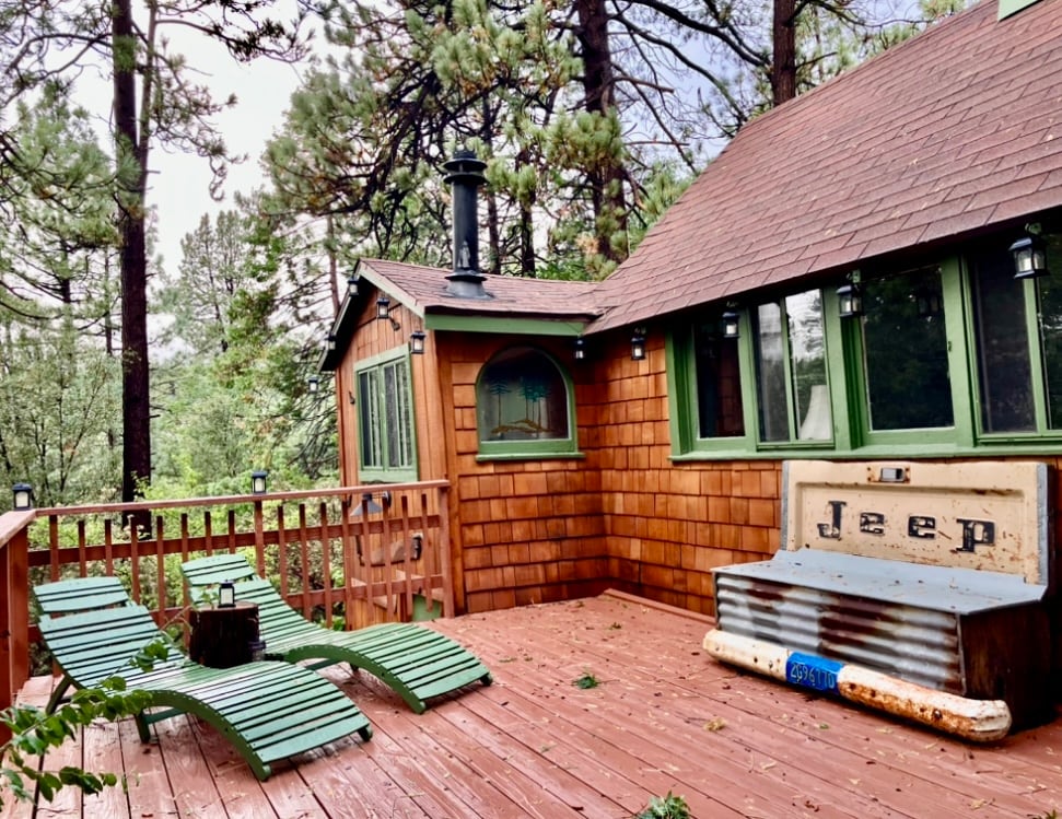 Welcome to our piece of paradise in the pines! Recently renovated rustic chic cabin featuring all new furnishings, organic linens, raised wood beam ceilings & numerous windows! A true nature lovers dream, find yourself relaxing on the expansive deck while enjoying stunning mountain sunsets! Cozy up to the warm fire pit while delighting in bird watching during the day & stargazing at night. The spiral staircase leads to our favorite feature, the loft bedroom with picture windows & treetop views!