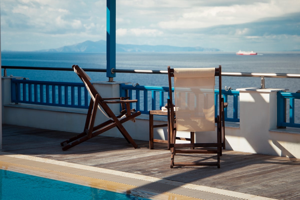 Aggelikes lüks villa,ayrıca hovuz,dəniz mənzərəsi
