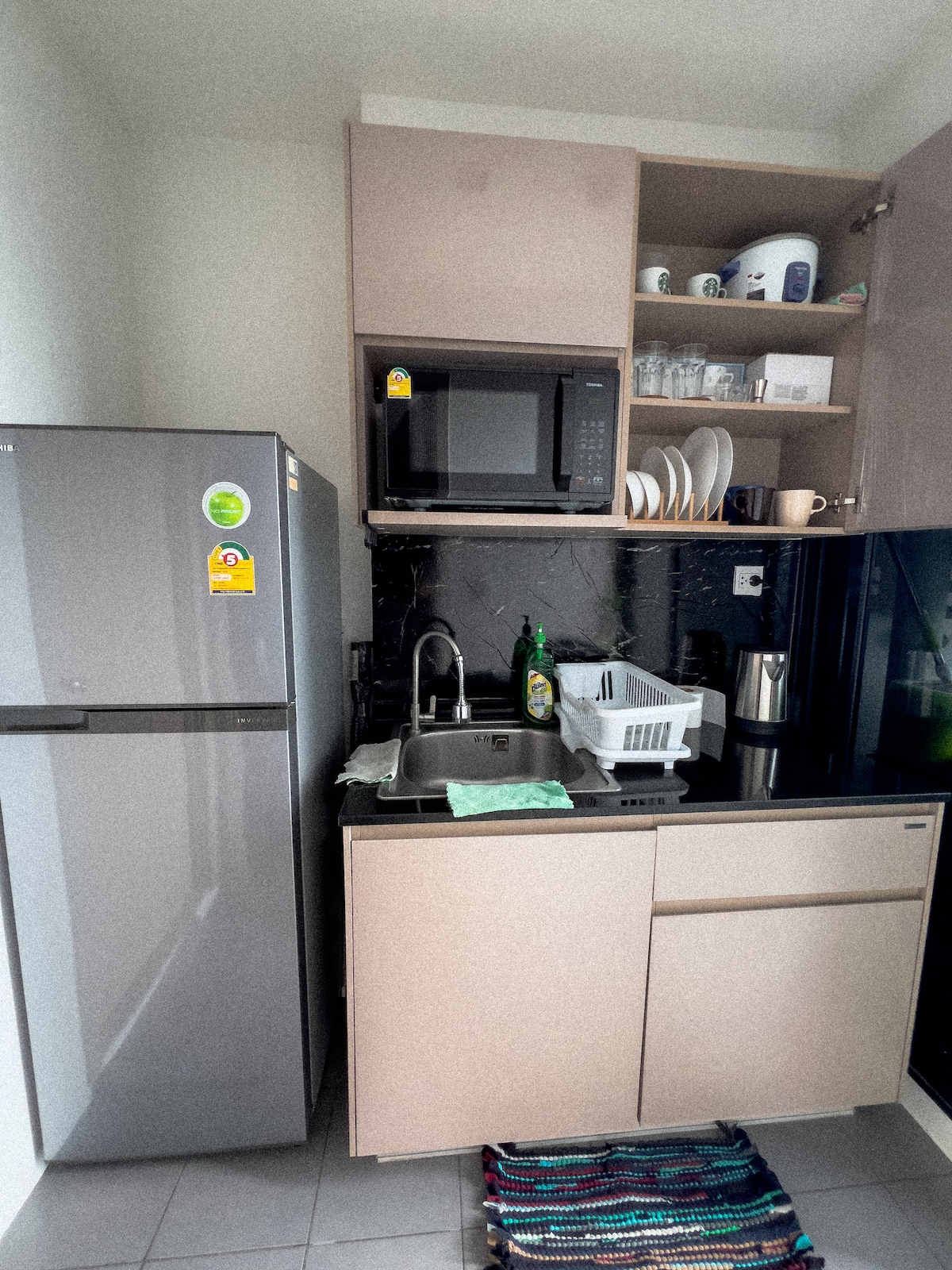 Kraliça ölçüsündə çarpayı, səmərəli balaca mətbəx və spa üslublu hamam otağı ilə təchiz edilmiş rahat studiyamız canlı Banqkokda uzun əyləncəli gündən sonra sizi mütləq anadangəlmə istirahətiniz üçün ideal atmosferlə təmin edir. Həmçinin Wi-Fi və TV kabelləri ilə təchiz olunub. Bu studiya Banqkokun tanınmış alış-veriş bölgəsindən 30-40 dəqiqəlik (qatarla), məşhur Çatuçak Bazarından 4-MRT stansiyaları olan MRT Bangson-a 5 dəqiqəlik məsafədə yerləşir. (Təfərrüatlar aşağıda)