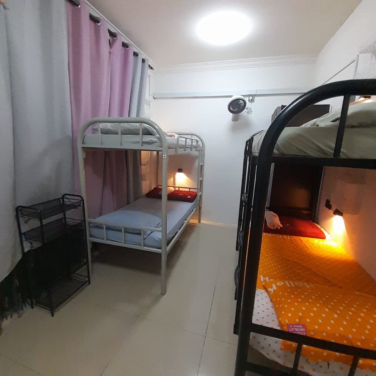 Suite 105 is with 2 bunkbed (4 singles). This room is with big windows, aircond and wall fan.