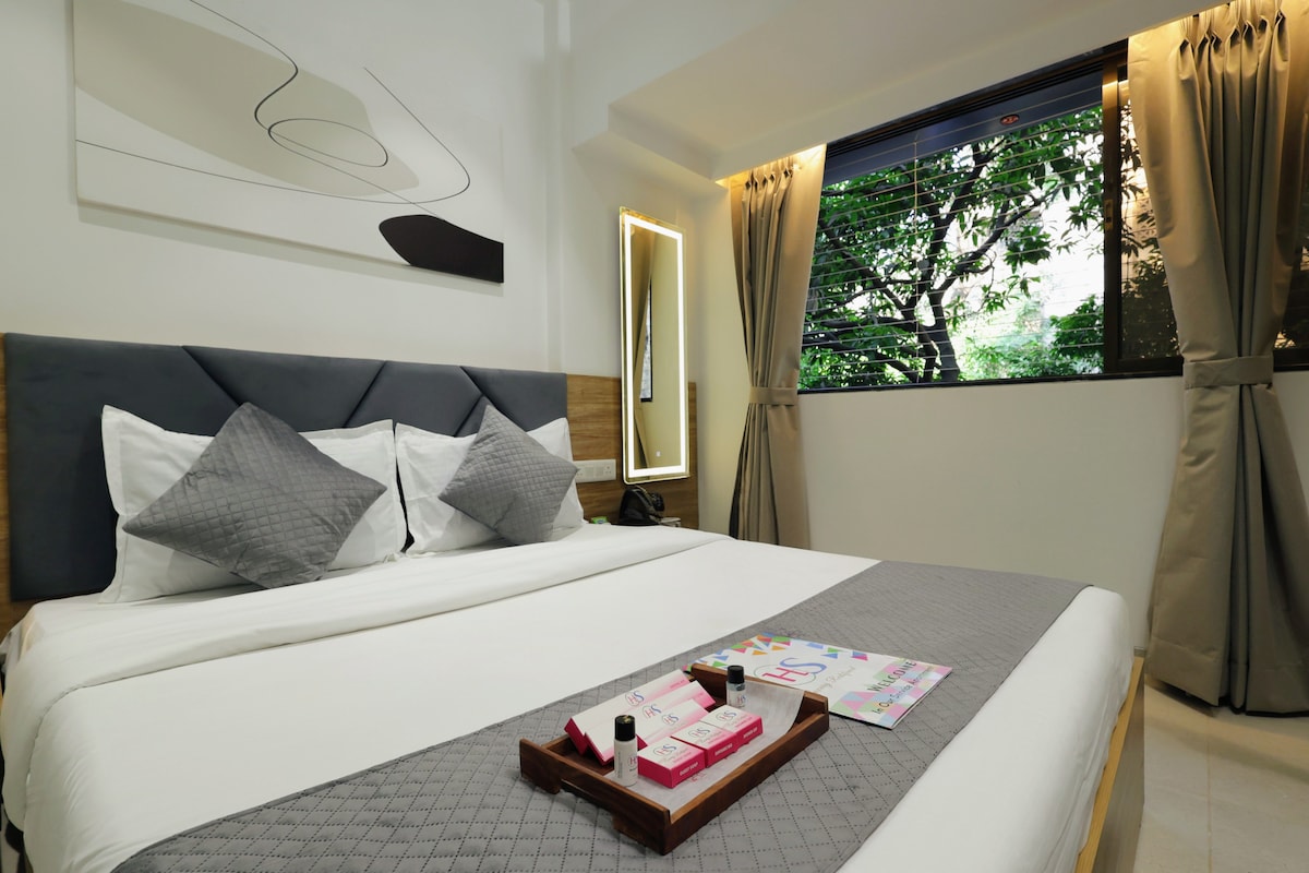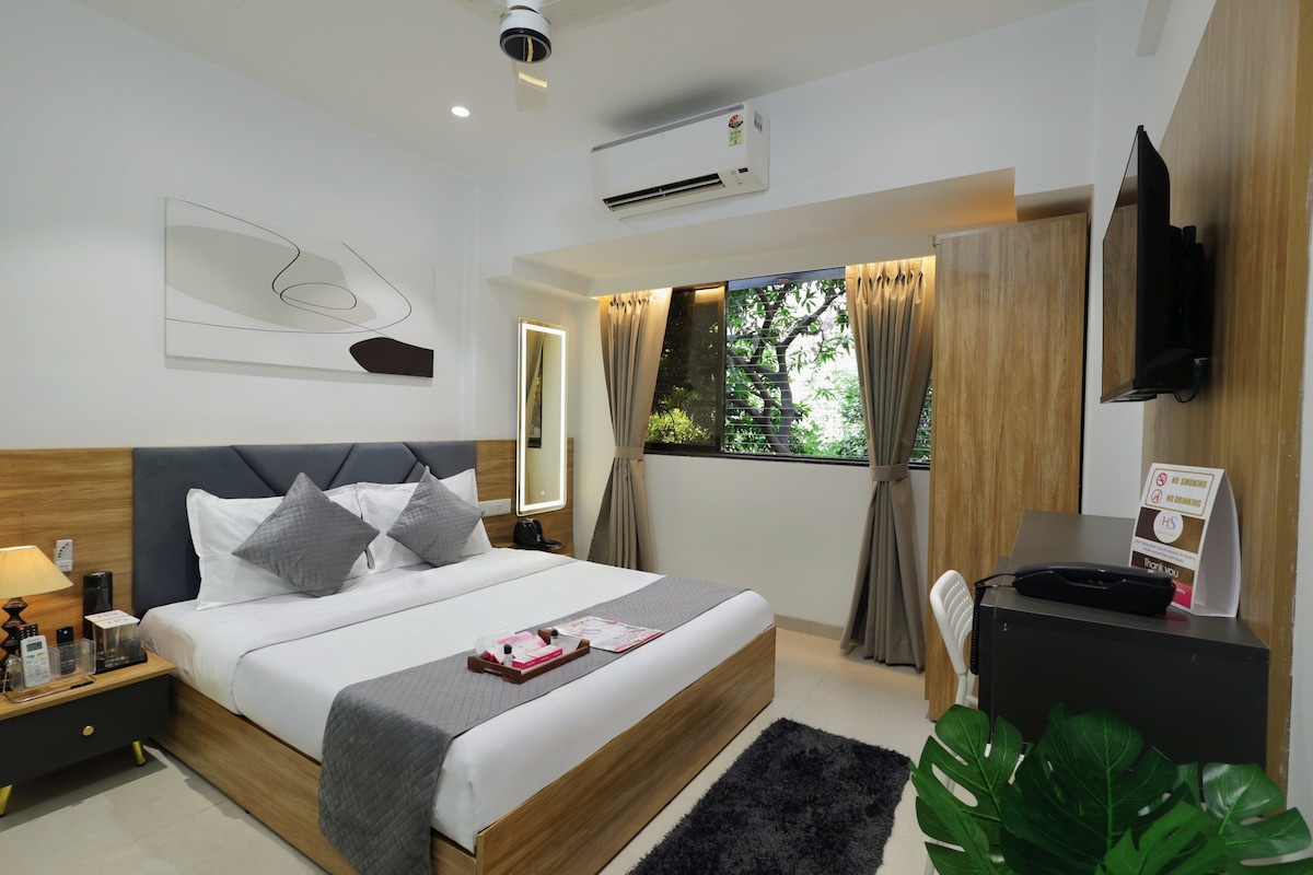 Experience a quiet and comfortable stay in our Premier Room in Chembur, thoughtfully designed for leisure travelers who want a mix of relaxation, convenience, and a touch of luxury in Mumbai. Set in a peaceful residential area, the room offers a calm environment away from the city rush, making it perfect for unwinding after a day of exploring. Large windows bring in natural light, creating a bright and refreshing space throughout the day.