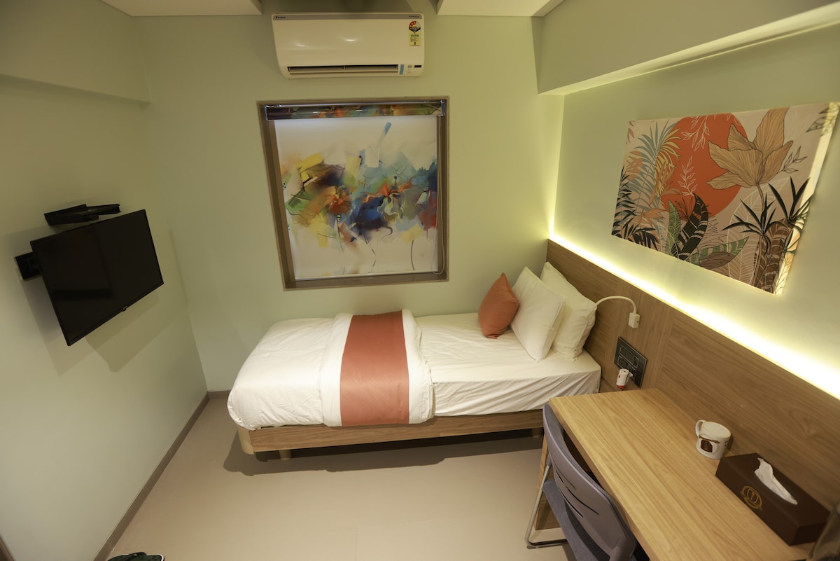 Stay close to the action at our modern 150 sq. ft room in Santacruz–Kalina, just 10 minutes from Jio World Convention Centre (BKC). Cozy, clean, and well-equipped with Wi-Fi, AC, TV, and ensuite bath. Ideal for solo travelers or business guests seeking comfort and convenience near the airport and Bandra Kurla Complex.
