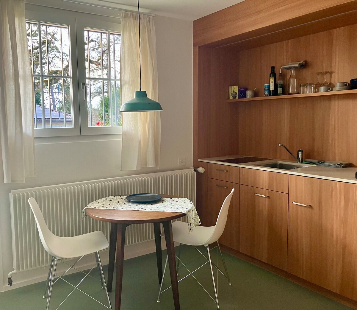 Gömülmüş mətbəxi, ayrıca tualeti və duşu olan 1 otaqlı mənzil. Höteana piyada 5 dəqiqəlik məsafə və konfrans qonaqları üçün idealdır. Böyük bağ vasitəsilə ayrıca giriş. Qatar stansiyasına, avtomobil yoluna yaxın və birbaşa yerli avtobusun dayanacağında sakit mühit və hələ də optimal şəkildə yerləşir. Alış-veriş məsafəsində. Arlesheim-Dornach qatar stansiyasından 5 dəqiqə (Bazeldə 10 dəqiqə ərzində S-Bahn tərəfindən).