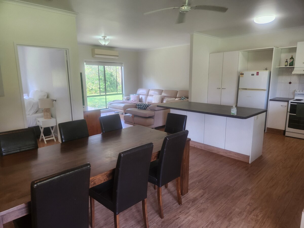 Atherton Tablelands-da iki böyük, uşaq və ya körpə üçün uyğun olan rahat özülü olan kottec. 400 metrlik qonşu yoxdur. Dünya İrsi Meşəsinə bitişik 20ha əmlakımızda dinclik və sakitlikdən, bol canlı təbiətdən və müxtəlif gəzinti yollarından zövq alın. Gözəl Tablelands araşdırmaq üçün əla mərkəzi yer. Əksər qonaqlar daha uzun müddət qala biləcəklərini arzu edir, buna görə də əlavə bir gecə qonaqlamaq barədə düşünün.