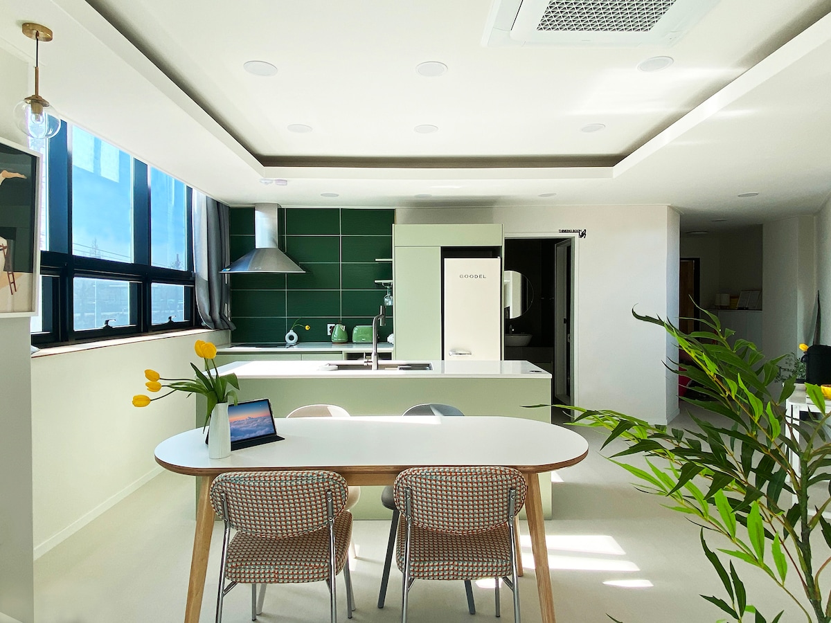 Bu, yayda sərin təmiz şəhər olan Taebaek-si şəhərində yerləşən şəxsi evdir. Burada böyük qonaq otağı, böyük otaq, istədiyiniz qədər edə biləcəyiniz mətbəx və vannası olan hamam otağı var. Loft quruluşu ilə ikinci mərtəbədə hamam otağı olan yaraşıqlı bir otaq var. Təbək pansionatları arasında ən yaxşı yer və mövqedir. Bu, lifti olan qonaqlama yeridir və şəxsi ev kimi istifadə olunur. Yaxınlıqda əylənə biləcəyiniz tavernalar, qəhvə mağazaları və karaoke otaqları var. Əsas binada 4 və ya daha çox avtomobilin park edilə biləcəyi ümumi istifadə üçün parkinq yeri var. Səhər tezdən 10 dəqiqəlik məsafədə Yeonhwasan Dulle-gildə səhər yeməyindən zövq ala bilərsiniz. Terrasda şənlik keçirə və axşam saatlarına qədər istirahət edə bilərsiniz. Ən yaxın dəniz Samçxok Şərq Dənizidir. Hosang və Limvon var. Deokqu İsti Bulaqlarına təxminən 66 km məsafə var.