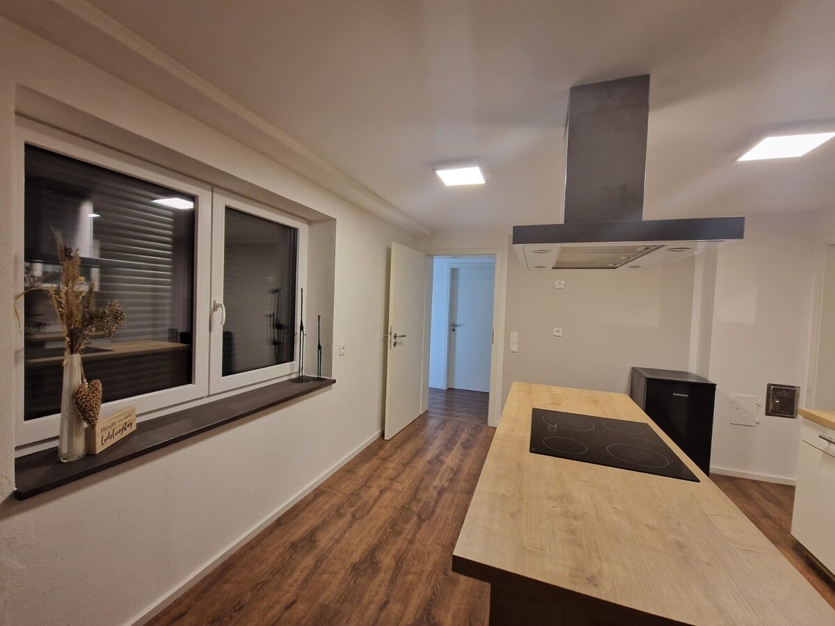 BoHo üslubunda Rhön-də, Langenleitendə Kunstangerdə sevimli mebelli mənzil. Gözəl buxarı ilə təchiz olunmuş romantik mühitdə qalacaqsınız. Gözəl bir kitab və yaxşı bir qədəh şərabla dincəlin. Bu dəbli qalmağa yerdə özünüzdən zövq alın və ya bütün ailənizlə əylənin. Yayda qamaklar, günəş vannaları və barbekü, eləcə də gözəl istirahət zonası olan böyük bağdan zövq ala bilərlər.