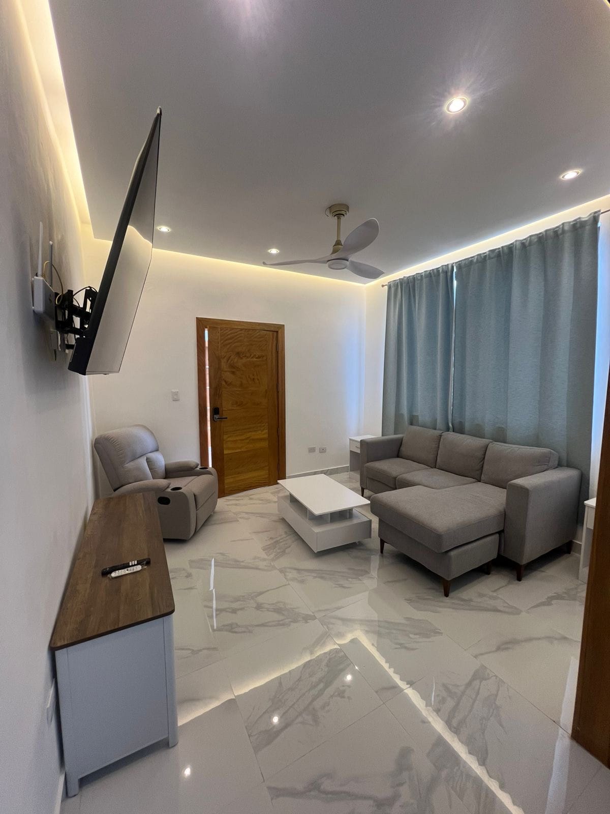 🌴 Welcome to your private sanctuary in the exclusive Green One Playa Dorada 🌴 This stylish one bedroom apartment is designed for comfort and tranquility. Every room opens to its own balcony; allowing you to enjoy refreshing breezes and panoramic scenery from morning coffee to golden sunsets. This apartment offers a boutique-hotel experience with warm lighting, elegant wood finishes and artistic nature inspired decor. A perfect place to unwind after a day at the beach or on the golf course.
