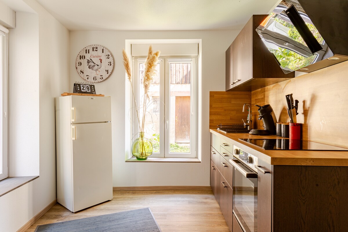 Münsterin mərkəzinə yaxın, böyük, ağaclı və çiçəkli bağda əsl təbiətin qoynunda dincəlin. Su və quşların səsi ilə tam sakitlik anları yaşamaq üçün iki terrasdan, o cümlədən veranda ilə birlikdə axına baxan taxta terrasdan zövq alın. Elzasın mərkəzində, üzüm bağları, dağlar və tipik kəndlər arasında yerləşən Munster bölgəni kəşf etmək üçün ideal bir məkanıdır. Bağ və ətraf təbiətə açılan, iki nəfərlik rahat və işıqlı kottec.