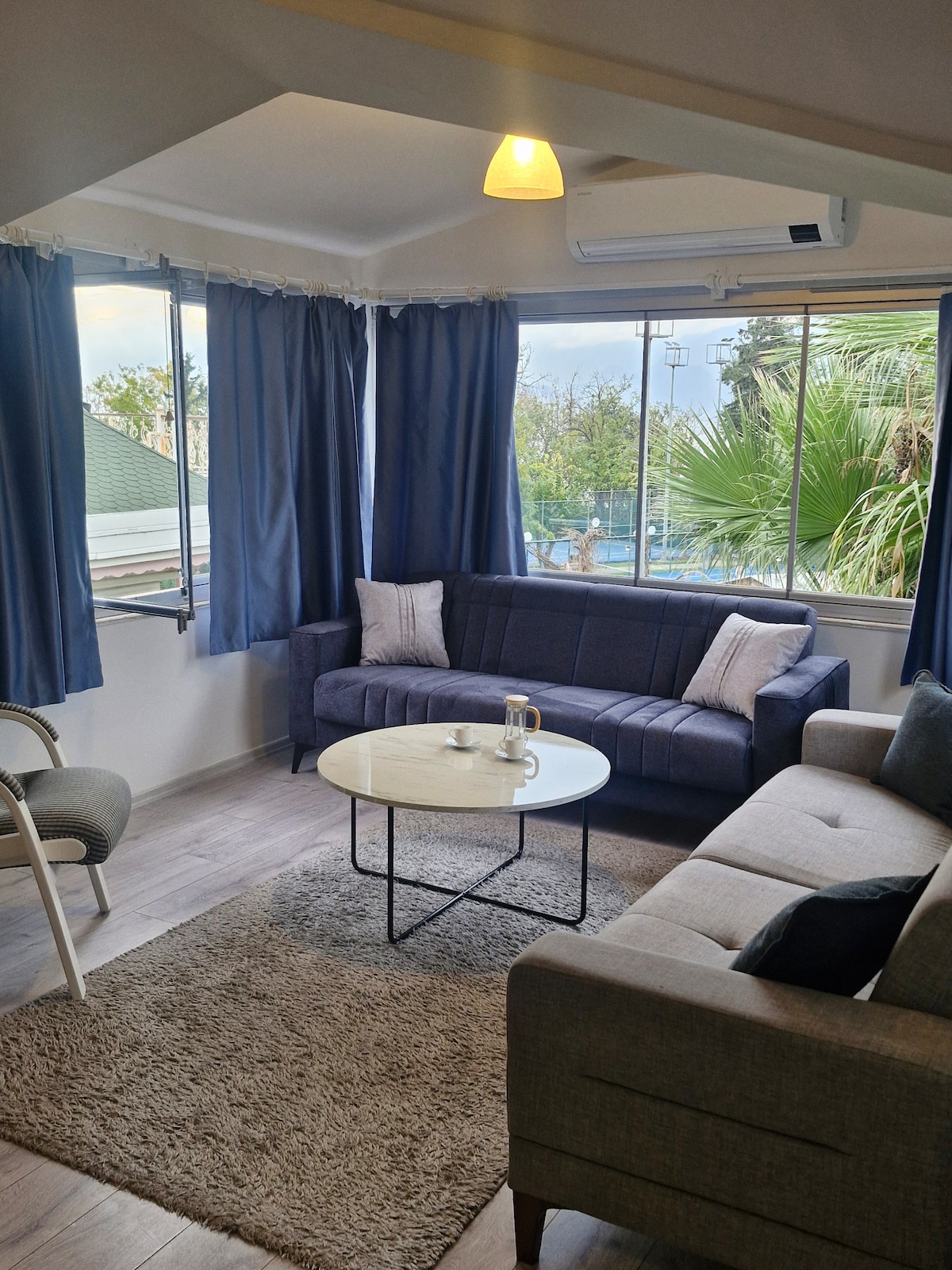 Wi-Fi bağlantısının sürəti 50 - 200 mbps təşkil edir ki, bu da turkeydə yuxarı hədddir. Evimdə 24 saat isti su var və 1 otaq və 1 qonaq otağı kimi nəzərdə tutulmuşdur. Divan qonaq otağında yataq ola bilər. 2 kondisioner(TOSHİBA) var. Şəhərin mərkəzində tarixi yerlərə və restoranlara 2 dəqiqəlik məsafədə yerləşir. Dünyaca məşhur MERMERLİ Çimərliyi 5 dəqiqəlik məsafədədir. Evin çox böyük bağı var və istəsəniz, bağda səhər yeməyi və şam yeməyi yemək olar. -airport 25 dəqiqə