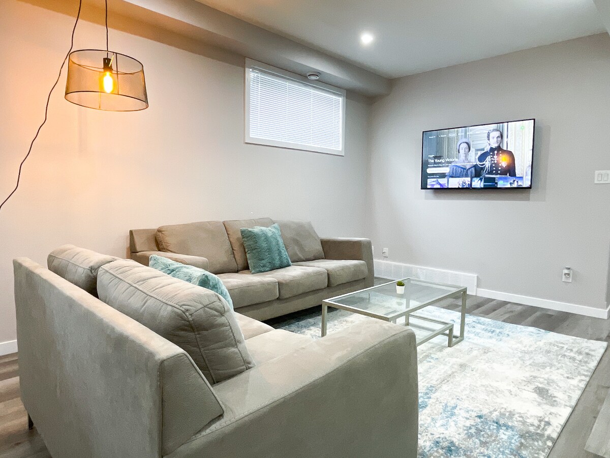 Üç qaradərili pişiyə xoş gəlmisiniz. Əslində mənzildə deyil, yalnız dizaynda pişikləri olan əsrin ortalarına aid müasir dizayn;) Mənzil tək sizə ayrıca giriş təklif edir və parlaq zirzəmi, kiçik, yaxşı təchiz olunmuş mətbəxi olan bir yataq otağı və dörd ədəd hamam otağı olan qonaq otağı var. Bu qurğu bir əsrlik evdə və digər tarixi evlər və parkla əhatə olunmuş məhəllədə yerləşir. Hava limanından və trans Kanada avtomobil yolundan 10 dəqiqəlik məsafədə yerləşir.