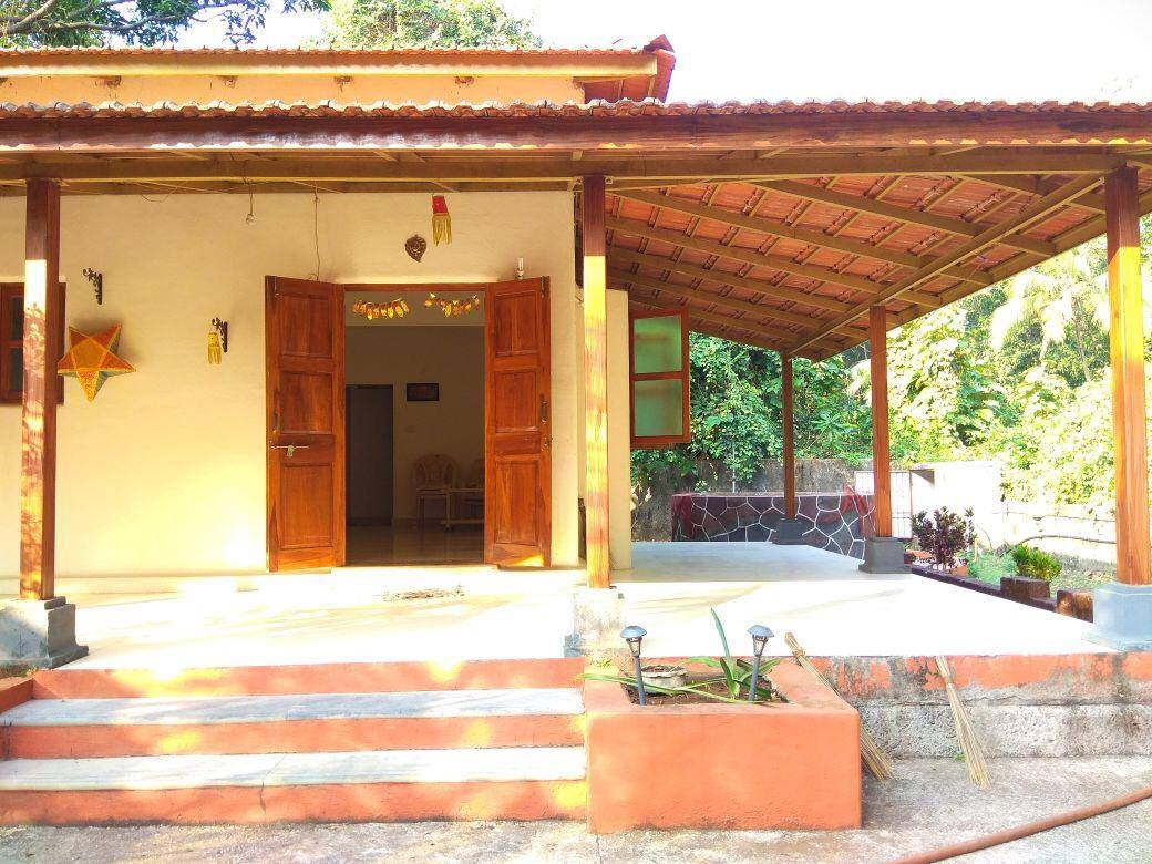 *Families, mixed group of friends preferred* *Alcohol consumption not allowed* House area 480 sq. ft. Total plot area 10,000 sq. ft. House is 2 ROOM SUITE. AC BedRoom, NonAC Living room, joined together, No door between two rooms. Western Toilet and bathroom, geyser - 24 hours hot water available. Bathroom, W/C and wash basin all three are seperate and inside the house. House surrounded by coconut, beetle nut, banana, Chikoo, jam trees. Well at the back of the house. A true Kokan House