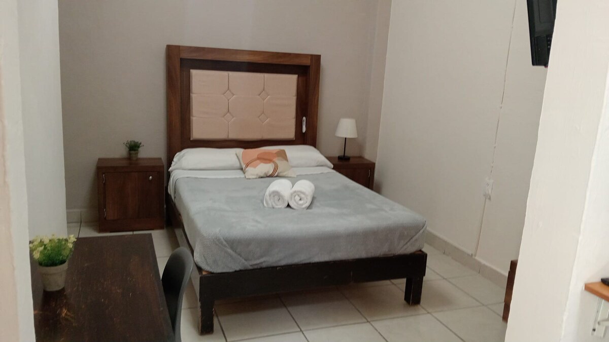 Comfortable and functional loft in Querétaro’s Historic Center, just a 5-minute walk from Plaza de Armas. It features a comfortable double bed, a fully equipped kitchenette, and a full bathroom, ideal for short or long stays. High-speed Wi-Fi (300 Mbps) is available, perfect for home office and remote work. Cafés, restaurants, markets, laundromats, gyms, transportation, and other services are just a few blocks away. Enjoy the city on foot from a quiet, prime location.