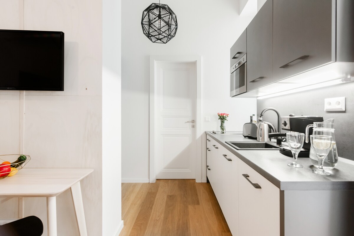 Parlaq toxunuşlu mətbəxdə qəhvə dəmləyin və füsunkar həyətə baxan rahat balkonda toxunmuş stuldan səhərə qədər gətirin. Minimalist dizayn, taxta döşəmələr və Scandi-style mebellər bu dəbli düzlükdə sakit auranı təmin edir.