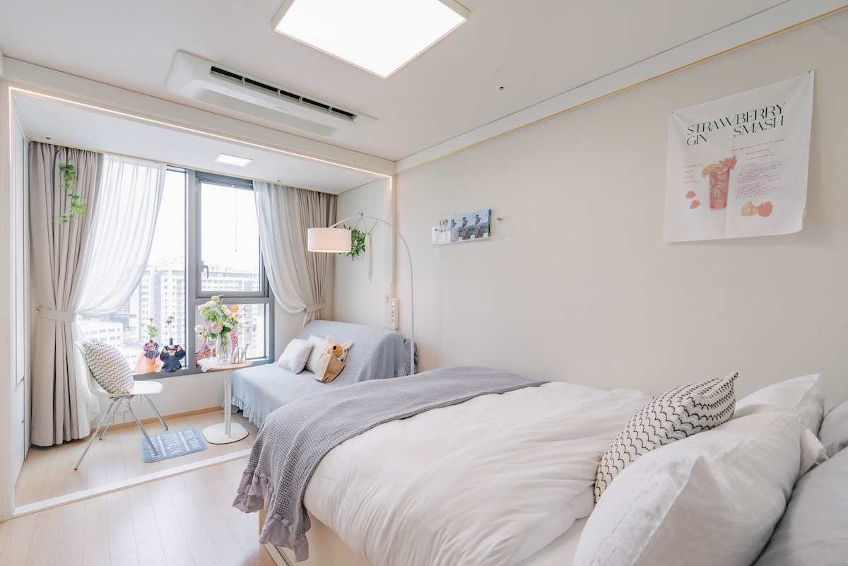 A newly built Residence within 3 minutes of 2 subway stations *Reception & Luggage Storage & Guest Lounge: B1F (English & Chinese-speaking staff available, breakfast service (paid)) *non-smoking property. fine: 150,000 won. *A Coffee machine & welcome coffee capsule, bidet ,drinking water purifier *Everything you need, just like home. *2 guests will use one bed. If you prefer separate beds, please request in advance. (paid) *For 3 or more people, a sofa bed will be set up as a bed.