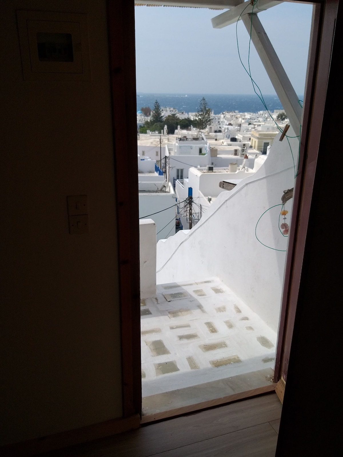 Bu, mərkəzi mykonos qəsəbəsindəki 3 mərtəbəli binada bir otaqdır. Hər mərtəbədə bir otaq var, bu otaq 3 mərtəbədədir, ayrıca hamam otağı və balkonu var. Şəhərə və dənizə gözəl mənzərəsi var. mətbəx komon istifadəsi üçün birinci mərtəbədədir. Yardımınız üçün hər zaman ətrafındadır