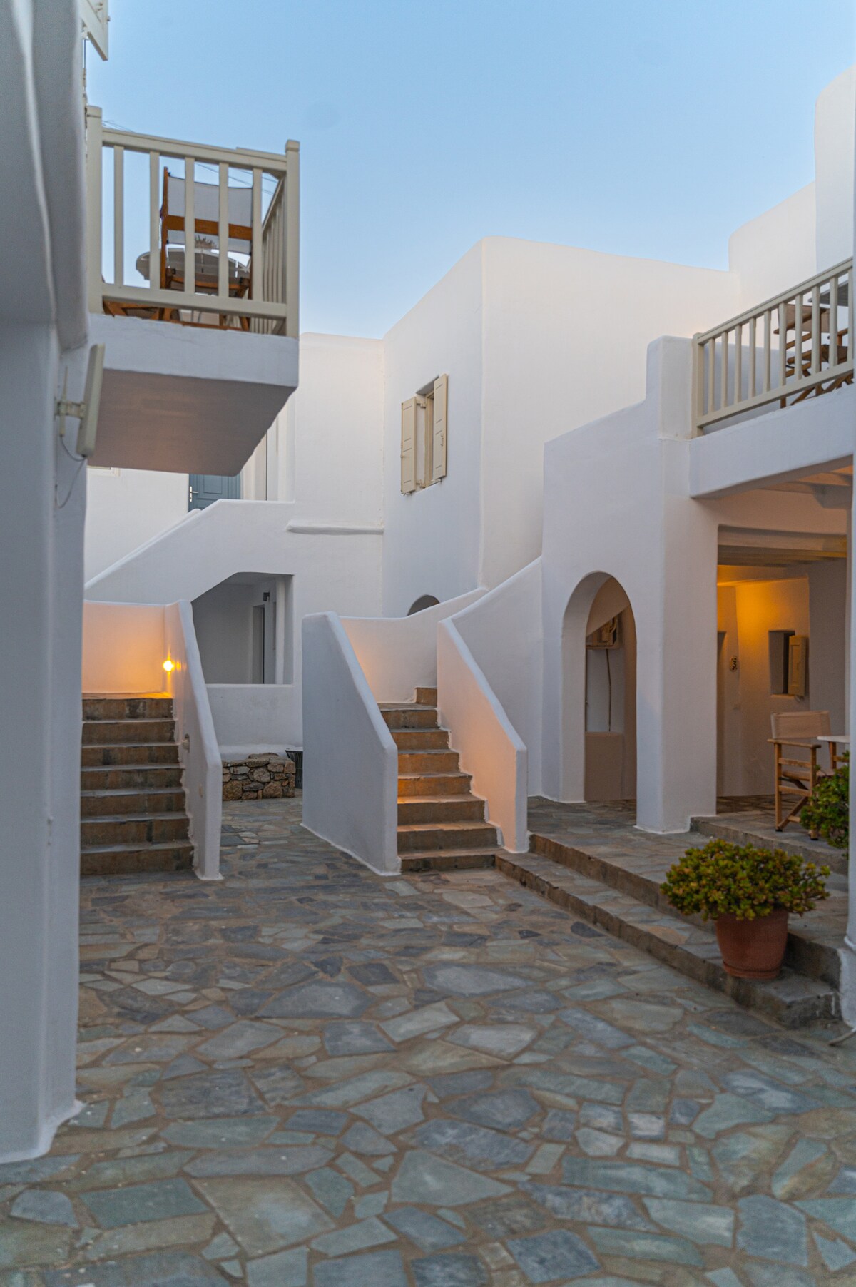 Ənənəvi Myconian memarlığına uyğun olaraq inşa edilmiş mənzillərimizlə Mykonosun orijinal cazibəsinə qərq olun. Ornosun mərkəzində, Biçin bir neçə addımlığında yerləşən mənzillərimiz Mykonosun canlı enerjisi arasında sakit vahə təklif edir. Gəldiyiniz andan etibarən qonaqlamanızın mümkün qədər rahat və əyləncəli keçməsini təmin edən səmimi və qonaqpərvərliklə qarşılanacaqsınız.