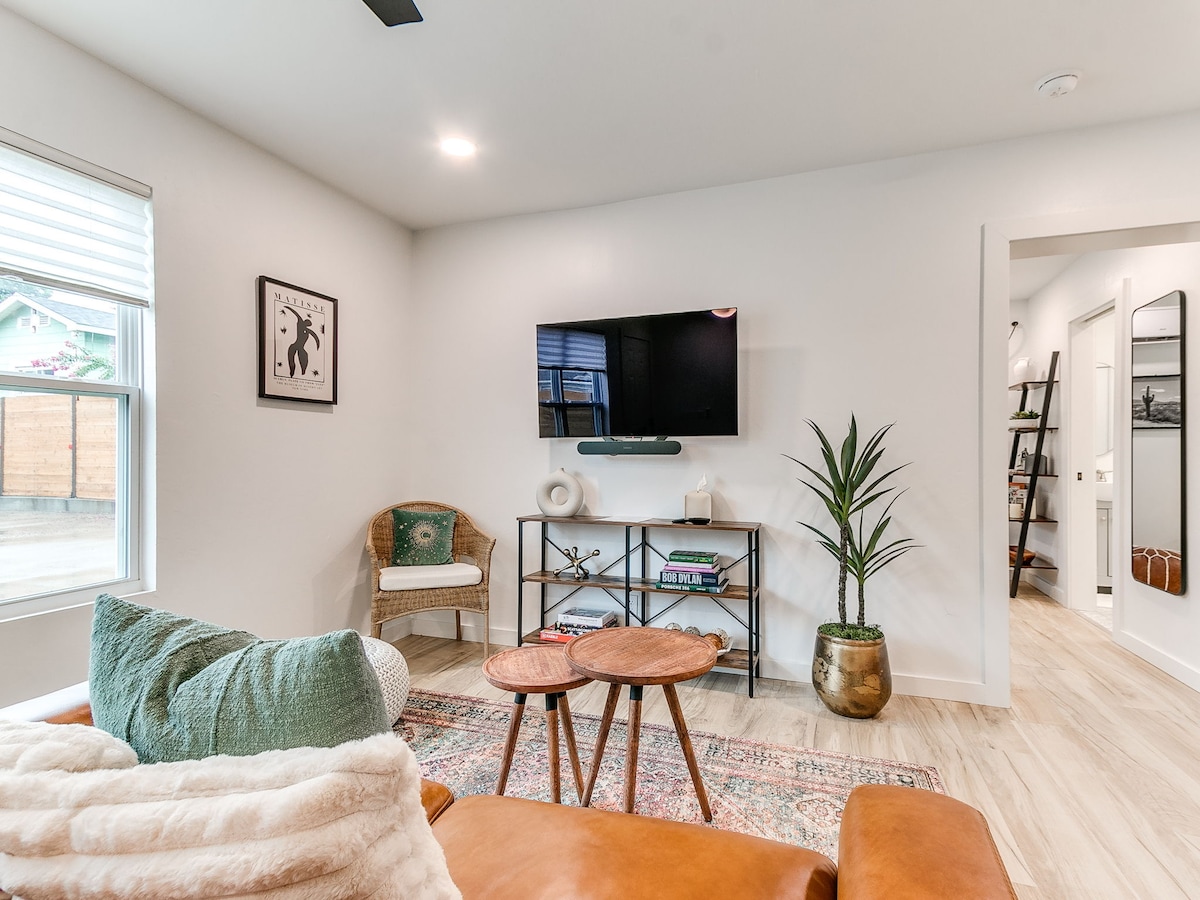 İkimərtəbəli çarpayısı və geniş hamam otağı olan tam təmirli 1 otaqlı mənzilimizə xoş gəlmisiniz. Tarixi OKC-də yerləşən, 50+ mağazası, barı, qəhvəsi və restoranı olan canlı Plaza Rayonundan uzaqda yerləşir. Şəhər mərkəzinə (8 dəq), Hava Limanına (16 dəq), Paseo İncəsənət Rayonuna (6 dəq) və Uptown-a (5 dəq) sürətli girişdən zövq alın. Bu dəbli şəhər istirahət məkanında müasir komfort və rahatlığı təcrübədən keçirin. HEPA hava filtrləri və SmartTV-lər, aşağı yastıqlar və qəhvə barı/mini-soyuducu və mikrodalğalı soba!
