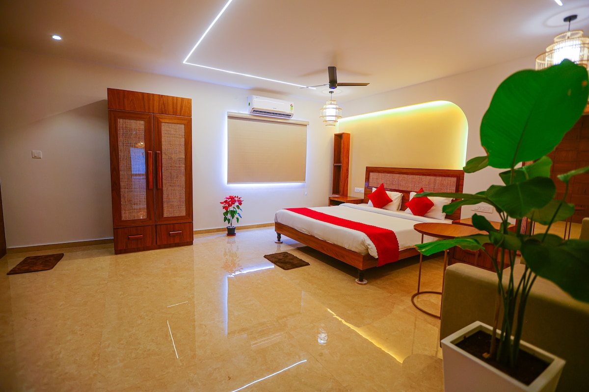 The price is for the Entire Villa!!! (2 bedroom , 2 King beds,1 dining hall ,1 sofa bed, 1 sofa , Wide Balcony, Kitchen , 3 bathrooms ) Nestled amidst the lush, rolling hills of Wayanad, Diamond Farms and Villas offers an unparalleled escape into nature. Surrounded by the tranquil beauty of the Western Ghats, this serene retreat is designed for those who seek peace, comfort, and a true connection with nature. What sets Diamond Farms and Villas apart is its integration with the surrounding farm.