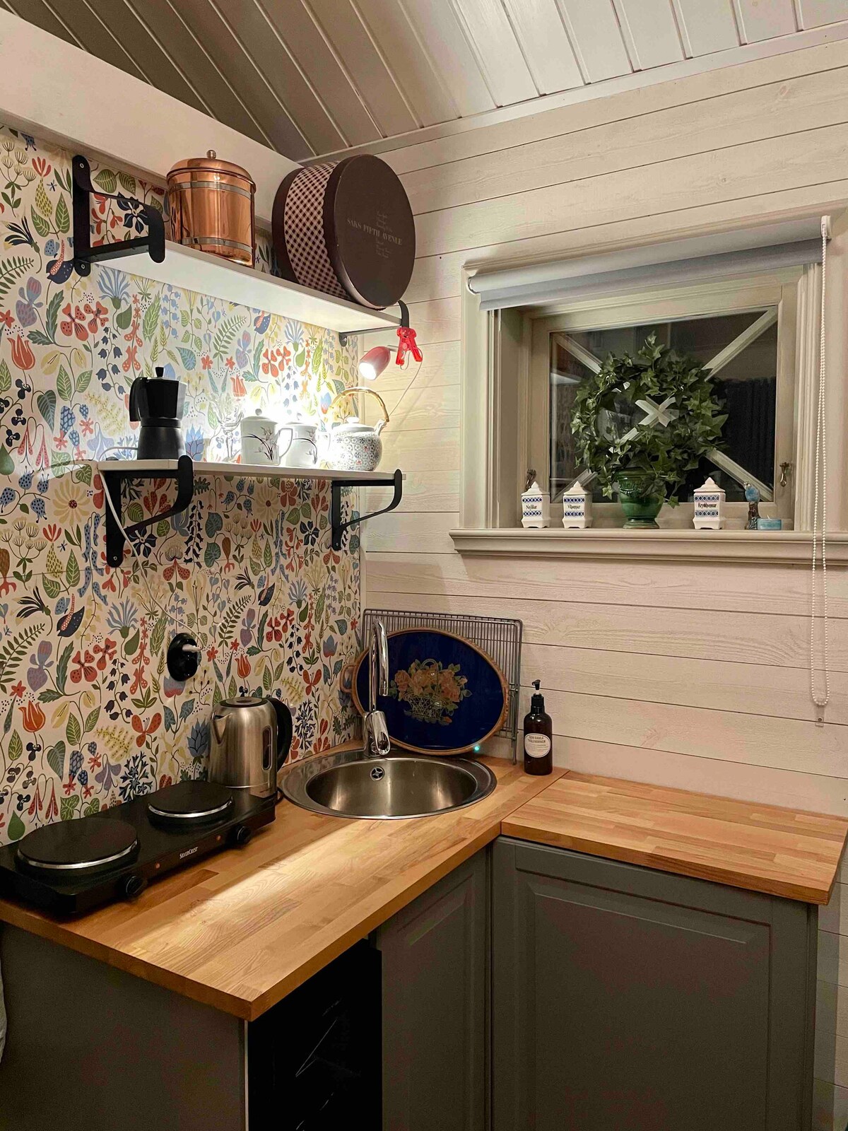 Altı nəfərə qədər insana uyğun olan füsunkar kabinə. Nəzərə alın ki, bu, ev deyil, olduqca kiçik kabinədir, buna görə də altı böyüksinizsə və Skandinaviya kabinələrinə öyrəşməmisinizsə, bu, bir qədər sıxlıq hiss edə bilər. Kabinədə tualet və bitişik binada duş/saunaya və bağda ceyran otağına giriş. Kabinə tamamilə yenidən bəzədilib və 2019-cu ilin sentyabr ayında yeni mətbəx quraşdırılıb. Əksər mebellər 2016-cı ilə aiddir. İctimai nəqliyyatla ona çatmaq mümkündür, lakin avtomobilə girişiniz olsa belə, daha yaxşı olar.