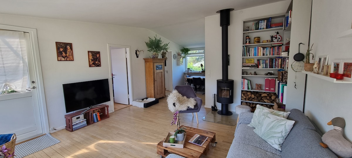 Meşə və çimərliyin yaxınlığındakı bu unikal və gözəl evdə dincəlin Yatmaq üçün terrası olan bir neçə dost/dost üçün kifayət qədər yer var. İçəridə ev genişdir, böyük sevimli qonaq otağı, ikinəfərlik çarpayısı olan yataq otağı və hamam-tualetə birbaşa giriş, soba, tabaşir, soyuducu və s. Paltaryuyan maşına giriş imkanı var Rungsted sahili Kopenhagen və Helsinqør arasında yerləşir. Suya təxminən 1 km, bütün restoranları və Karen Blixen evi ilə dəbli Rungsted Limanı.