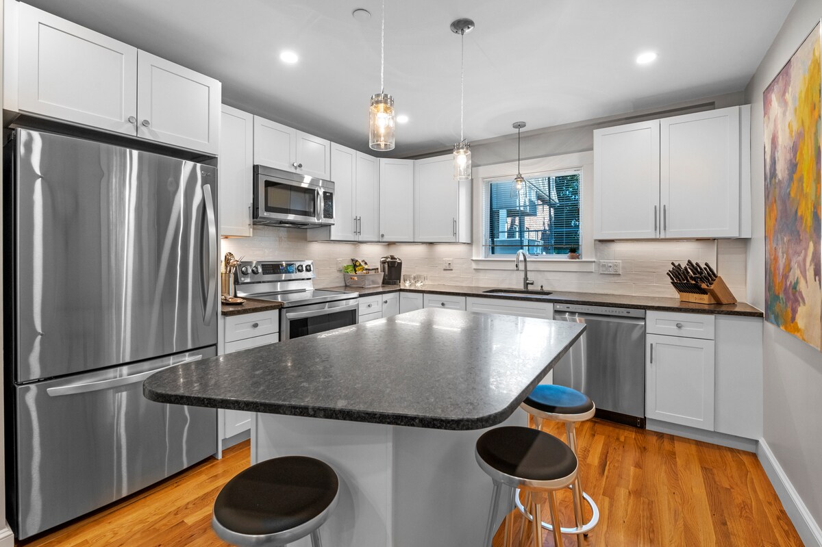 The Loft Wake up to the ocean. This top-floor penthouse sits directly on Kings Beach with unobstructed water views from every window. Cathedral ceilings, skylights, hardwood floors, a quartzite kitchen, and a jetted spa tub make this one of the North Shore’s most distinctive stays. Your own private deck. 28 minutes to Boston by commuter rail — the world is at your door, but you won’t want to leave.