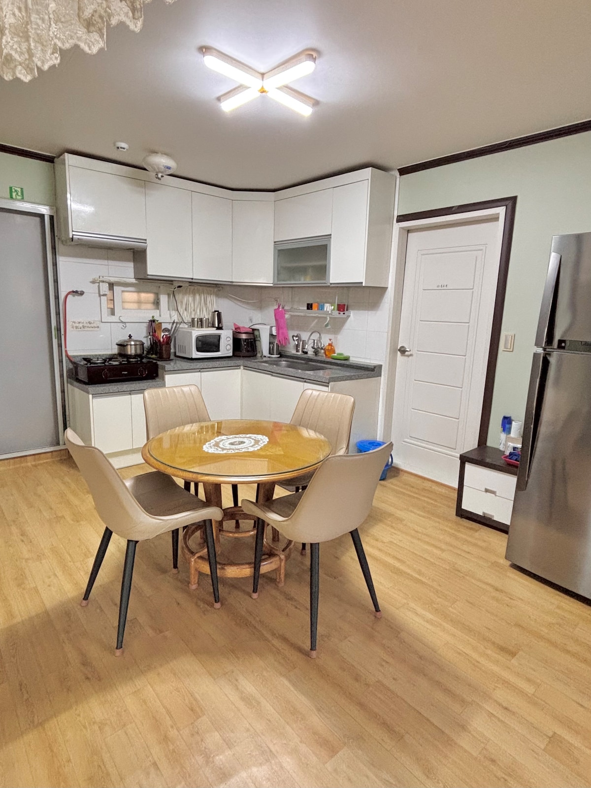 Gwangju KTX Songjeong Stansiyasının arxa qapısından 3 dəqiqəlik məsafədə yerləşən, evə bənzər atmosferi olan xoş, rahat və qonaqpərvər bir yaşayış yeridir. Yeni bina olaraq bütün qurğular və yataq dəstləri tüklü və yenidir. Parkinq mövcuddur (Əvvəlcədən bizimlə əlaqə saxlayın, sizi pulsuz qeydiyyatdan keçirəcəyik) İmkanlar zamanı kondisionerlər təmin edilmir.