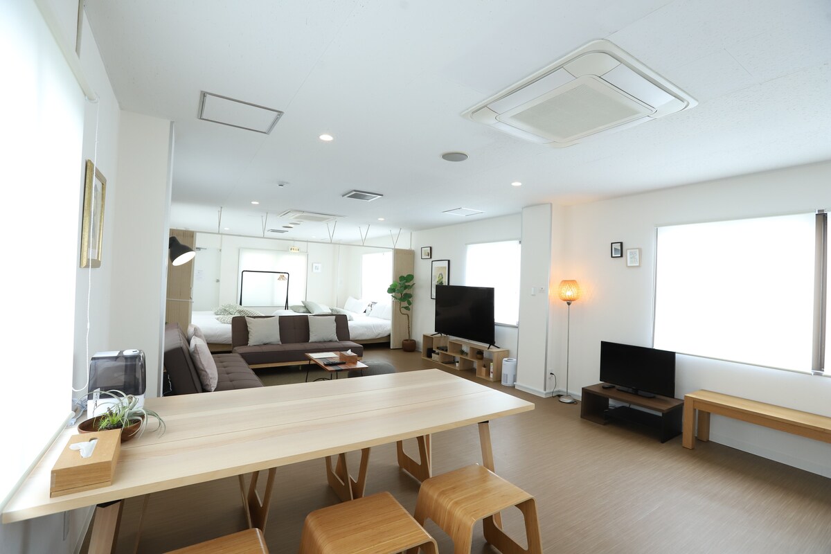 Yüksək keyfiyyətli mebel və təzə təmir edilmiş ədviyyat ilə həm qısa, həm də uzun müddətli rahat qonaqlama. ■Otağın ölçüsü: 50 m² - Çudenmae Stansiyası stansiyadan 4 dəqiqəlik məsafədə -7-Eleven (rahat mağaza) 2 dəqiqəlik məsafədə Müəssisənin ətrafında müxtəlif növ restoranlar var. Xirosima vağzalından Xirosimaya xas küçə karvanı ilə asan giriş. 65 düymlük böyük ekranlı televizorunuzda AmazonPrimeVideo-dan da yararlana bilərsiniz. Mətbəx və paltaryuyan maşınla təchiz olunmuş kondominium.