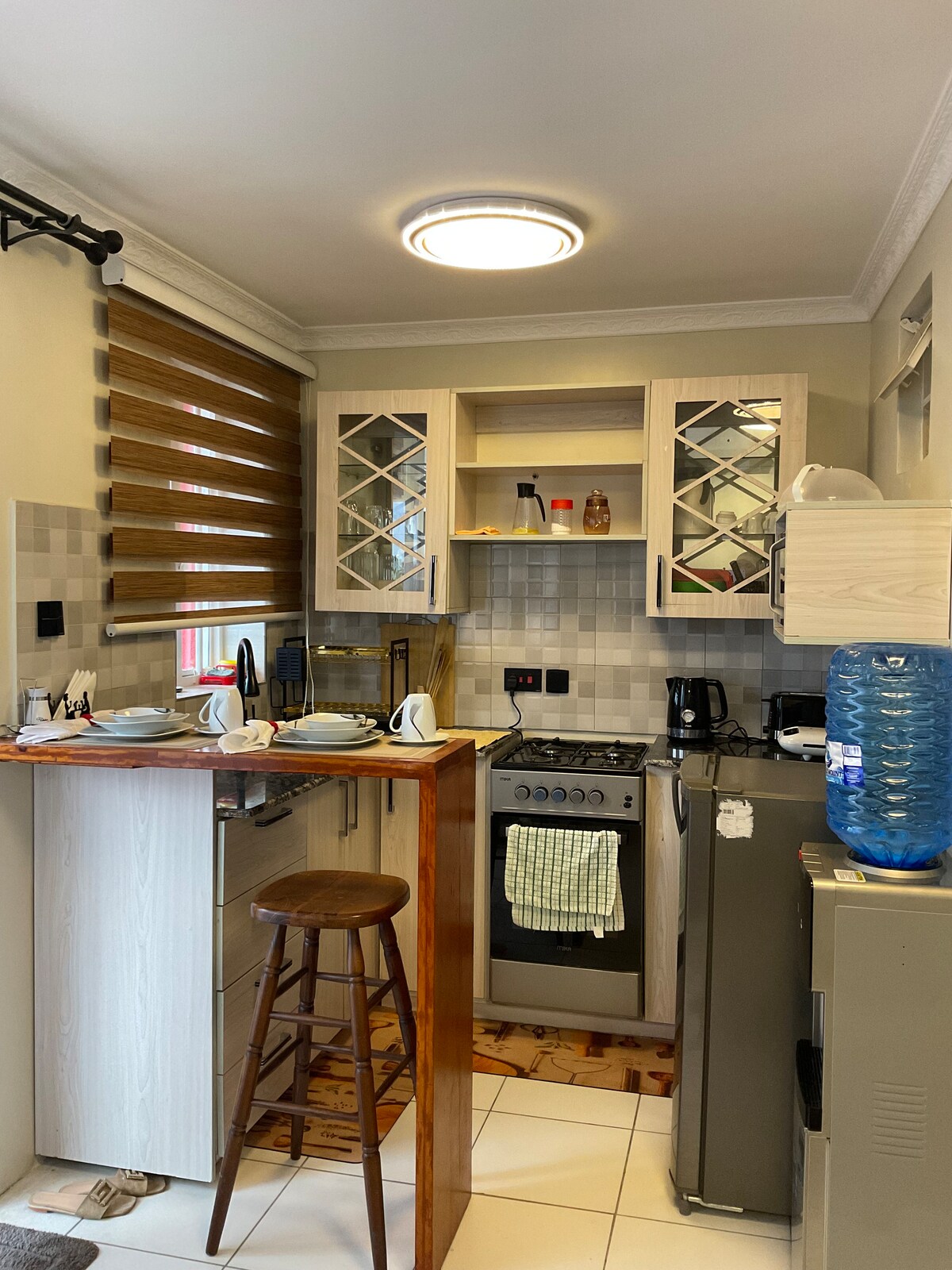 Bu unikal və dəbli ev Nakuru qraflığında ailəsi, dostları, işgüzar səfərləri, tətil və ya istirahət vaxtı olan mükəmməl bir yerdir. Nakuru Nayrobi avtomobil yolundan cəmi bir neçə metr məsafədə və göl Nakuru Milli parkından, şəhər mərkəzindən, ticarət mərkəzlərindən və digər imkanlardan qısa məsafədədir. Tam təchiz olunmuş ev, rahat çarpayılar, pulsuz parkinq, sürətli Wi-Fi, 24/7 təhlükəsizlik, böyük balkon, sevimli mənzərələr və həyatınızın ən uyğun evini təmin edən öz-özünə yoxlama kilidi ilə təmin edilir.