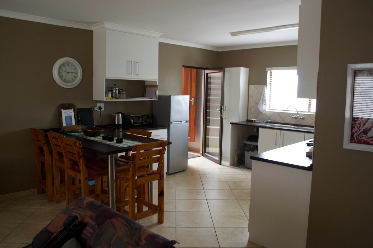 Low-frill budget-friendly family-sized accommodation in centrally-located rustic and spacious 200 sqm cottage in bird-rich garden with outdoor facilities. Close to Swakop Car Hire, Bushlore etc., ideal as first and last stops for self-drive safari visitors with safe parking, walking distance from CBD and Wernhill shopping mall and flexible check-in hours. Dog-friendly for friendly dogs.