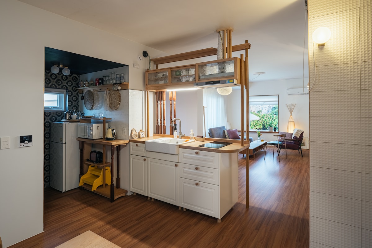 Jeju adasının unikal hissiyyatını tam yaşaya biləcəyiniz geniş və rahat qonaqlamalarda qonaqlayarkən narahatlığınızı və narahatlıqlarınızı unudun. Jejuda müstəqil qonaqlamalar arasında ən uyğun qiymət 2 yataq otağı, 2 hamam otağı, geniş pəncərəli qonaq otağı istirahət üçün mükəmməldir Sitrus bağına mənzərəsi olan otaq və hamam otağı Olle Cığırından və çimərlikdən piyada cəmi 3 dəqiqəyə zövq alın Paltaryuyan maşın, quruducu və mətbəx ləvazimatları ilə təchiz olunub