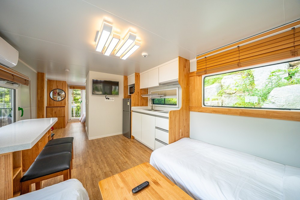 안녕하세요. 저희는 다양한 휴식 공간을 연구하고 제공하는 ONDA입니다. 이 곳에서 머무르실 모든 분들께서 편안하고 행복한 시간을 보내기를 바랍니다. [숙소 소개] 24년 7월 신규 오픈한 숙소 포세이돈 카라반입니다. 야외에는 강과 마주한 인피니티 풀도 운영되고 있어 휴양지에 온 듯한 느낌을 받으실 수 있습니다. 야외 개별 리버뷰 바베큐부터 파고라 휴식 공간까지 쉼을 위한 많은 공간이 준비되어 있습니다. [객실 유형] 원룸형 (더블1,2층침대1+주방+화장실1) * 침구는 예약하신 인원에 맞게 제공됩니다.