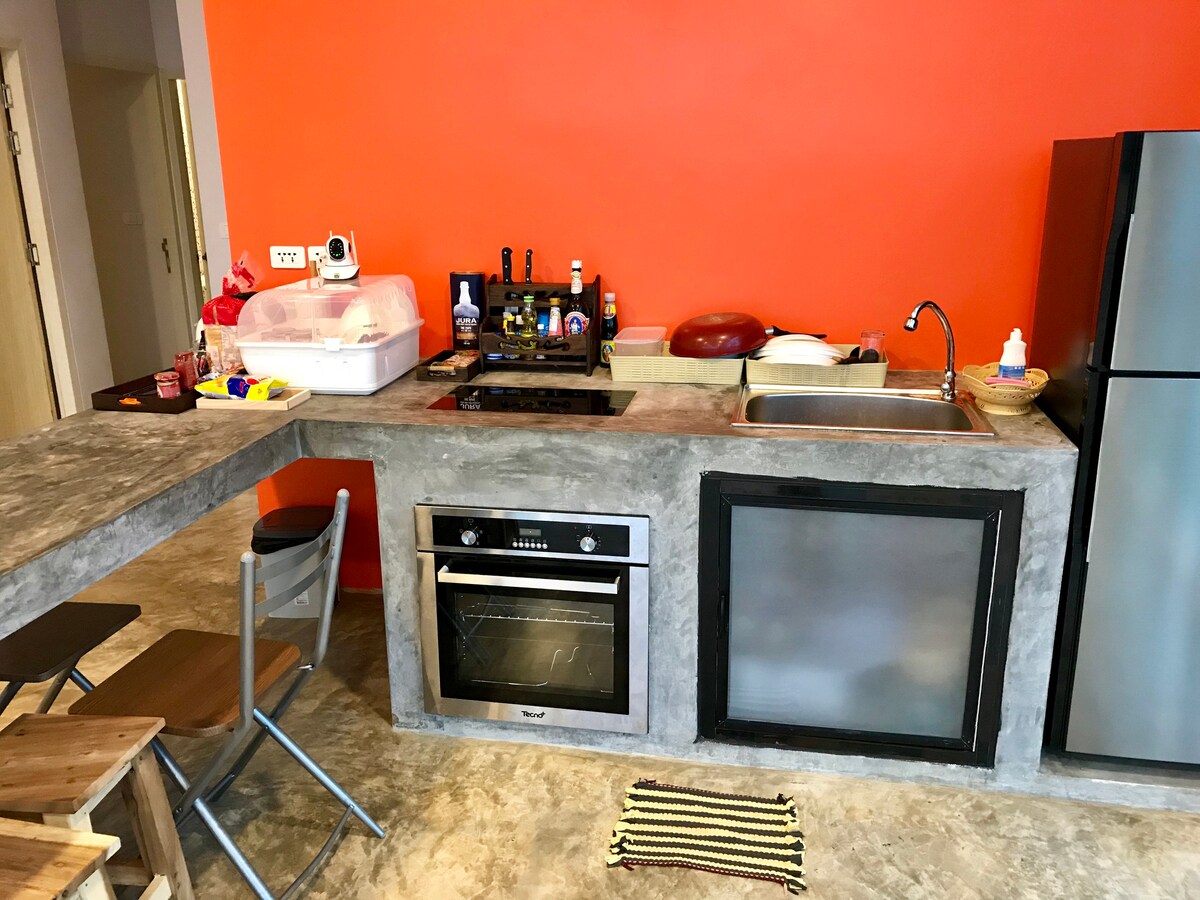 Qəşəng tropik Tay üslubunda rahat və təmiz Vibe! Dağ, yaşıllıq meşəsi və çəmənlik sahəsi boyunca yerləşən heyrətamiz göl kənarında təbii resurslar və ənənəvi ab-hava ilə əhatə olunmuşdur. Pulsuz velosiped və icarə motosikleti ilə təmin olunub. Hava limanından cəmi 10 dəq, şəhərdən isə 15 dəq. məsafədə, tanınmış yer və səyahət yerinin yanında, daha çox məlumat gələnlər qutusu ilə bizimlə əlaqə saxlayın