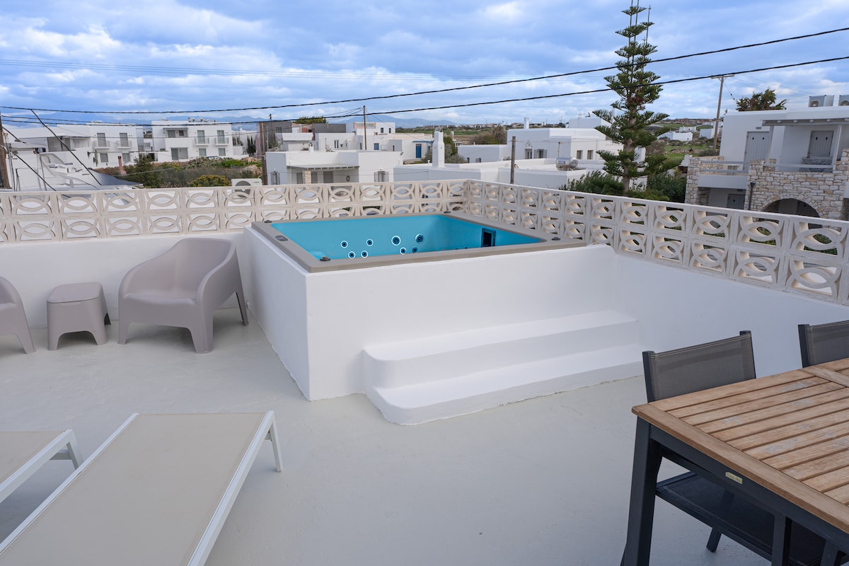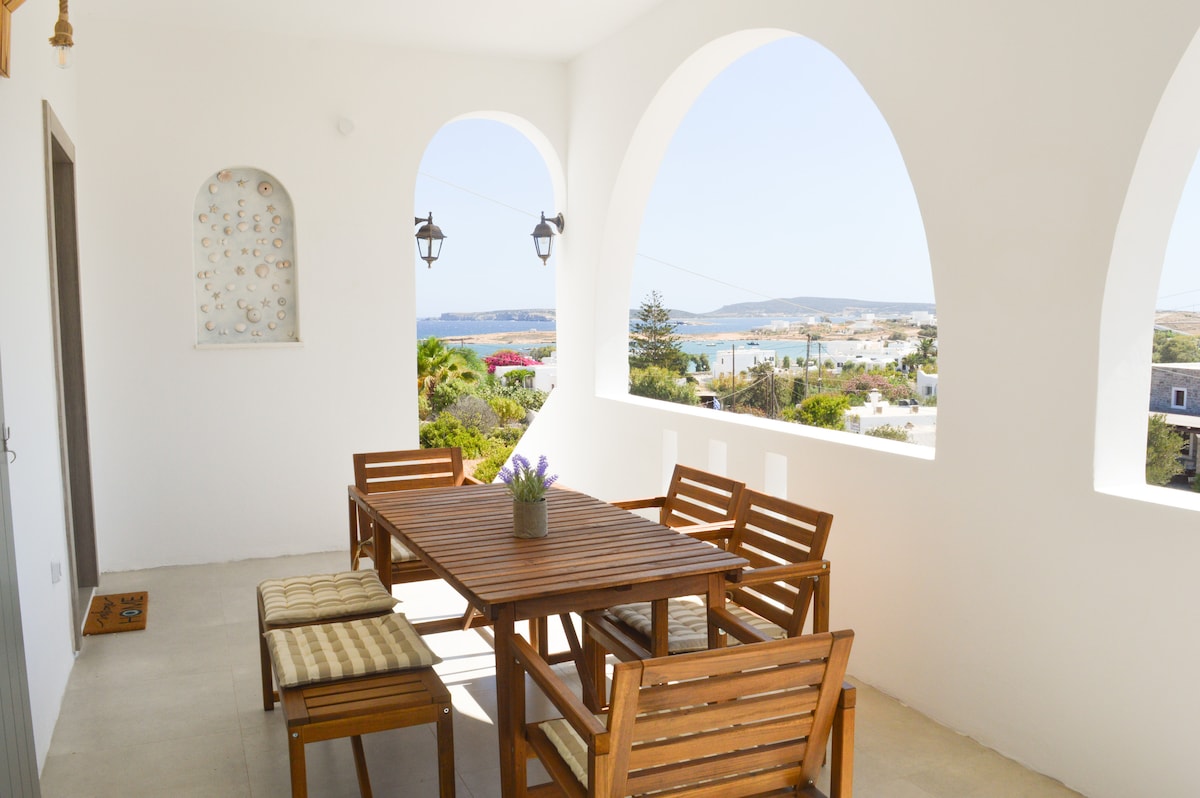 Parosun gözəl Naousa şəhərində dəniz mənzərəli 2-6 qonaq üçün yeni, parlaq və təzə bir mənzil sizi pıçıldayacaq..."Nə yaxşı evdir!". Naousa mərkəzindən cəmi 3 dəqiqəlik məsafədə, ən yaxın çimərliyə 6 dəqiqəlik məsafədə, küçədə parkinq yeri və Mykonos və Naxosa açılan mənzərəsi olan 2 verandalı bu möhtəşəm ev yayın ən yaxşı anlarını əhatə edəcək. Siz orqanik ot fermamıza və daha çoxuna baş çəkəcək və yaşayacaqsınız!