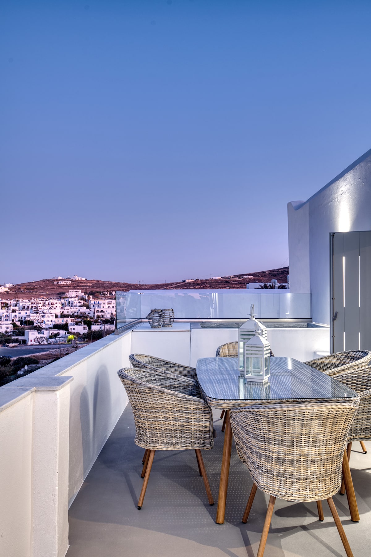 In the most cosmopolitan part of the island, you will find a stairway that leads to the stars! At Ad Astra you will find quiet luxury harmonized perfectly with the traditional philosophy of the place. An elevated, spacious, fully equiped house of more than 100m2, including 3 bedrooms, 2 bathrooms, a kitchen, a dining room, a living room, a balcony and an amazing rooftop view, accessible to our guests, when they can admire the entire bay of Naoussa, Panagia church and the rest village.