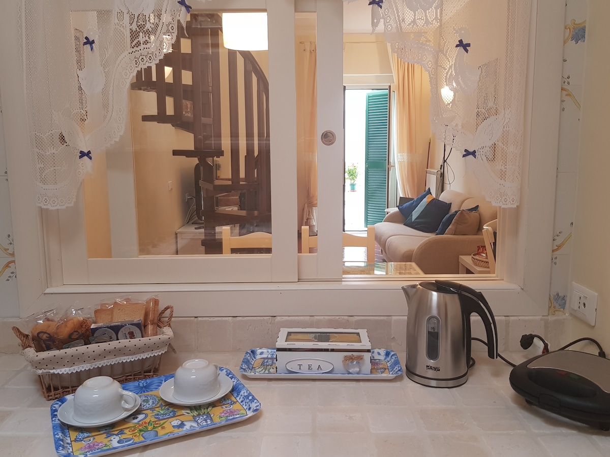 Mənzilin sahibi qonaqlara təklif etdiyi orijinal qonaqpərvərliyə görə Neapol bələdiyyəsinin Müşaviri tərəfindən qadınlar və qonaqpərvərlik mükafatına layiq görülüb. Ev Neapolun tarixi mərkəzində, məşhur San Severo Şapelinin yaxınlığında yerləşir. Əmlak 1700-cü illərin sonlarına aid binanın işlər mərtəbəsində yerləşir və liftlə xidmət göstərir. Lift sikkə maşını ilə işləyir və hər gedişin qiyməti 5 sentdir ki, bu da sahibi tərəfindən sizə təqdim ediləcək.