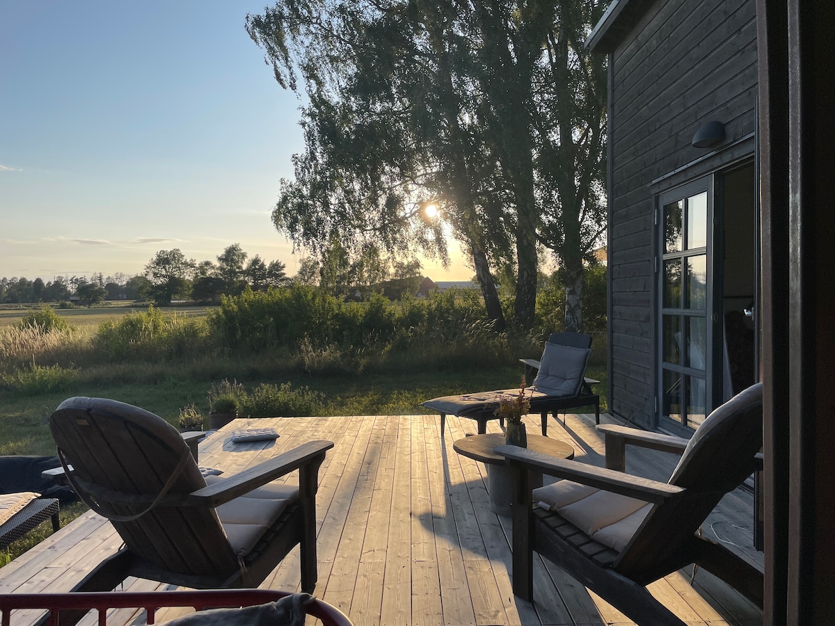 Arkitektritat sommarhus (inflyttning 2017) med utsikt över havet. Kök med alla bekvämligheter och tvättstuga med tvättmaskin/torktumlare. Wifi (fiber). Utekök med grill. Tv-rum med stor TV. Ett badrum med dusch/badkar och ett med endast toalett. Attefallshus med gästrum (dubbelsäng och våningssäng för 3 barn, dock inget badrum). Gästhus med dubbelsäng och utedusch Cyklar, surfbräda och SUP finns att låna. OBS: lakan + handdukar ingår inte. Fler bilder kan skickas.