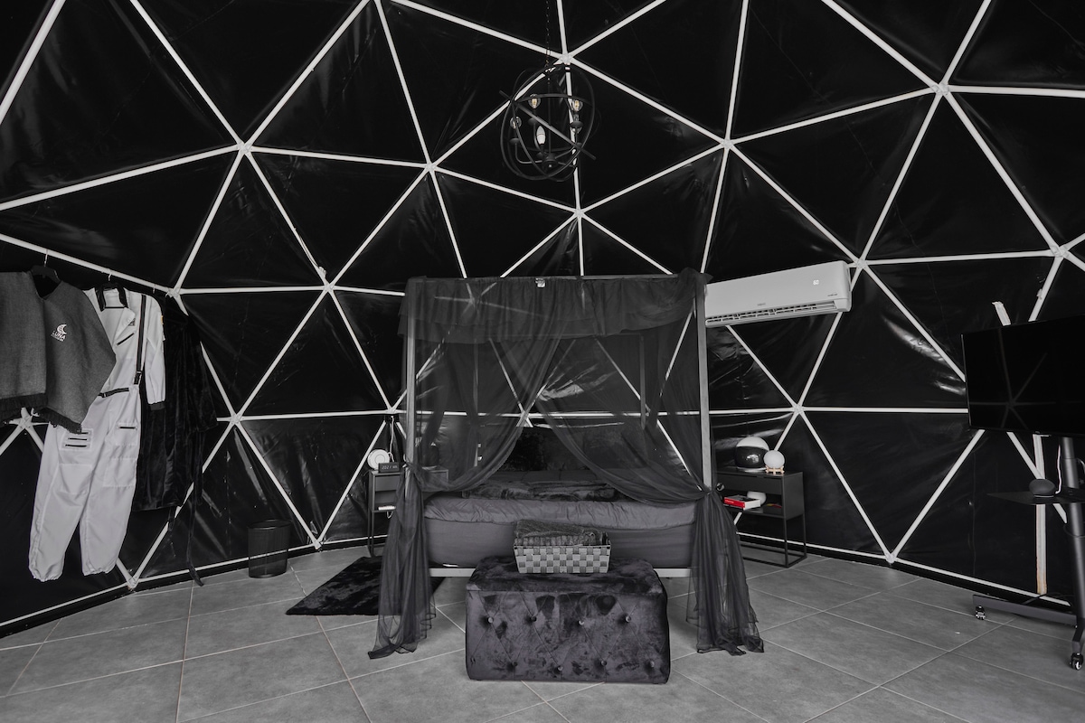 Barranquitas şəhərində yerləşən Puerto Rikoda ilk müstəqil konseptual təcrübə üzrə ev sahibiyik. Ayda olduğunuzu hiss etdirən məkan hazırlamışıq. 20 futdan çox qara günbəz, qızdırıcı, yanğın pit, istirahət şəlaləsi, WiFi, TV, film tətbiqləri, stolüstü oyunlar, daha çox təcrübə ilə Infiniti hovuzu Alexa ilə tam idarə olunur. Gələn hər bir insan adada turizmin astronavtı olur.