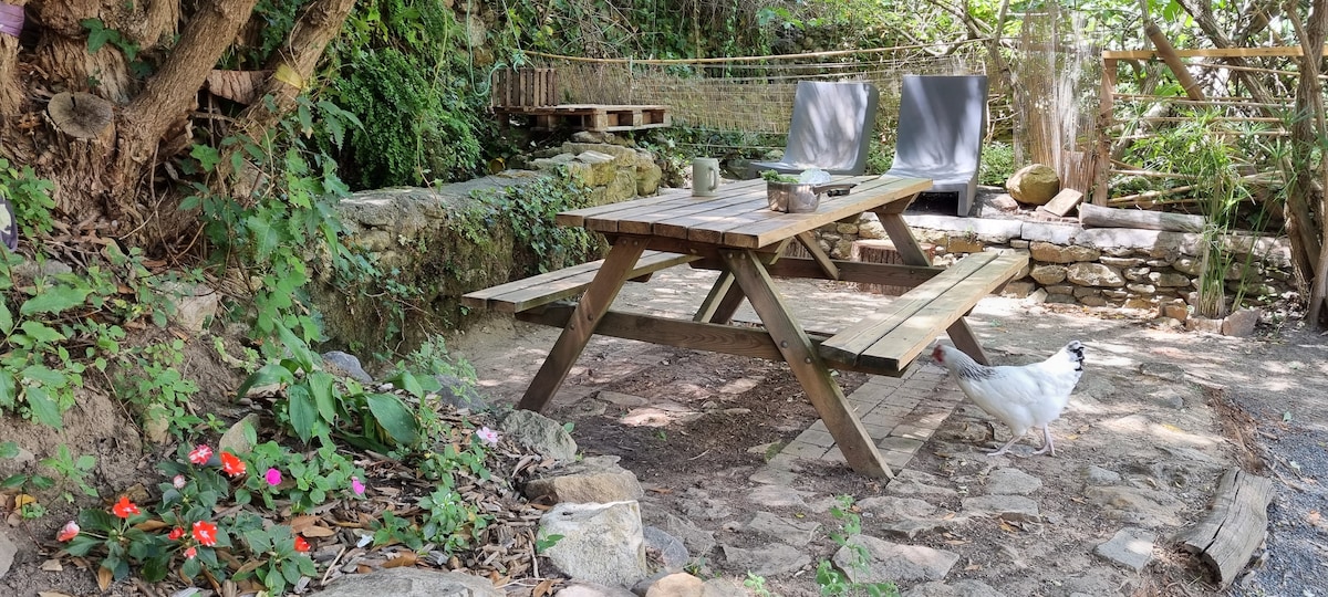 Romantic mountain refuge. In my rustic and cozy chalet, I offer you a unique living experience in the heart of the forest, nestled in the mountains, where wildlife also roams. A large wooden terrace and private garden allow you to fully immerse yourself in nature. You'll find all the comforts you need, including 4G Wi-Fi. Located in the heart of hiking trails in the Montagne Noire region of Occitanie. 45 minutes (35 km) from Carcassonne airport. Taxi from Lespinassière (english speaking).