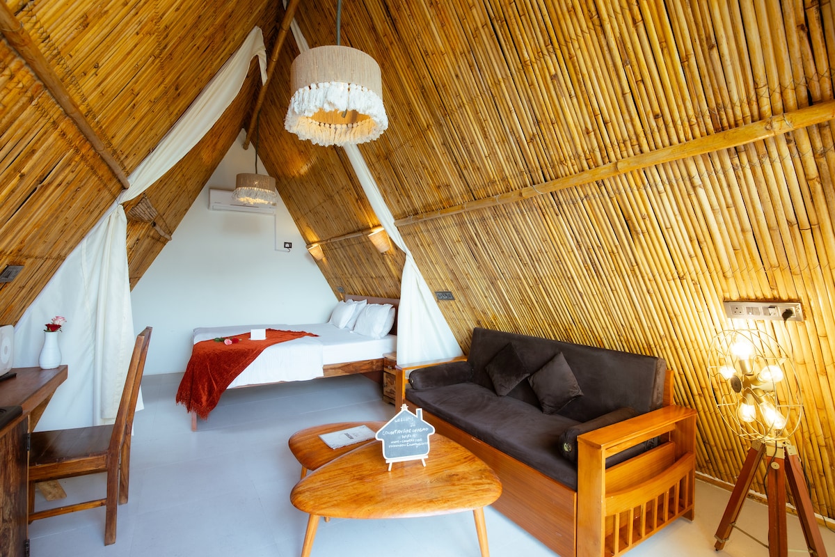 Bu unikal yerdə qonaqladığınız zaman təbiətin səslərindən zövq alın. Bu, qonaq+yataq otağı sahəsi olan üçbucaq formalı kottecdir. Burada dörd nəfərlik ailəni yerləşdirmək üçün divan-kreslo da var. Kiçik ayrıca hovuzu olan açıq havada duş da təqdim edirik. Kottecin daxilində xüsusi iş masası da mövcuddur. Aravalli təpələri ilə üzbəüz açıq loftda oturaraq dincəlin.