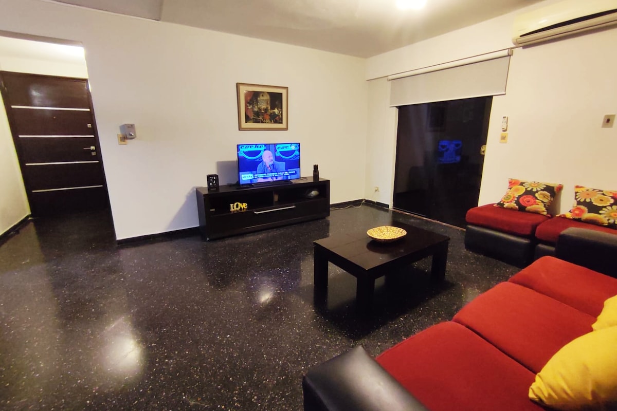 Modern apartment in the heart of Asunción. All furniture and appliances are new, including A/C. Enjoy a fully equipped kitchenette, Wi-Fi (200 Mbps), 50" Smart TV, and a stylish living space. Includes high-quality linens and towels for a restful stay. The building is very safe and has 24-hour concierge service for peace of mind. Walk to major attractions: Costanera 5 min, Palacio de los López 6 min, Calle Palma 4 min. Perfect for business or leisure—clean, convenient, centrally located!